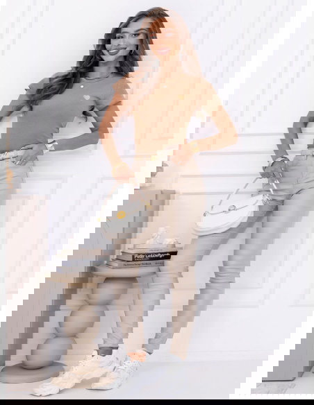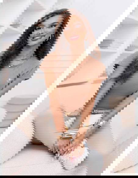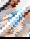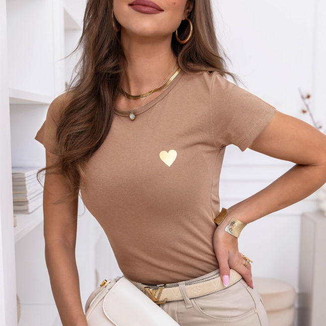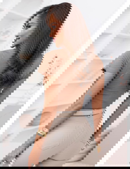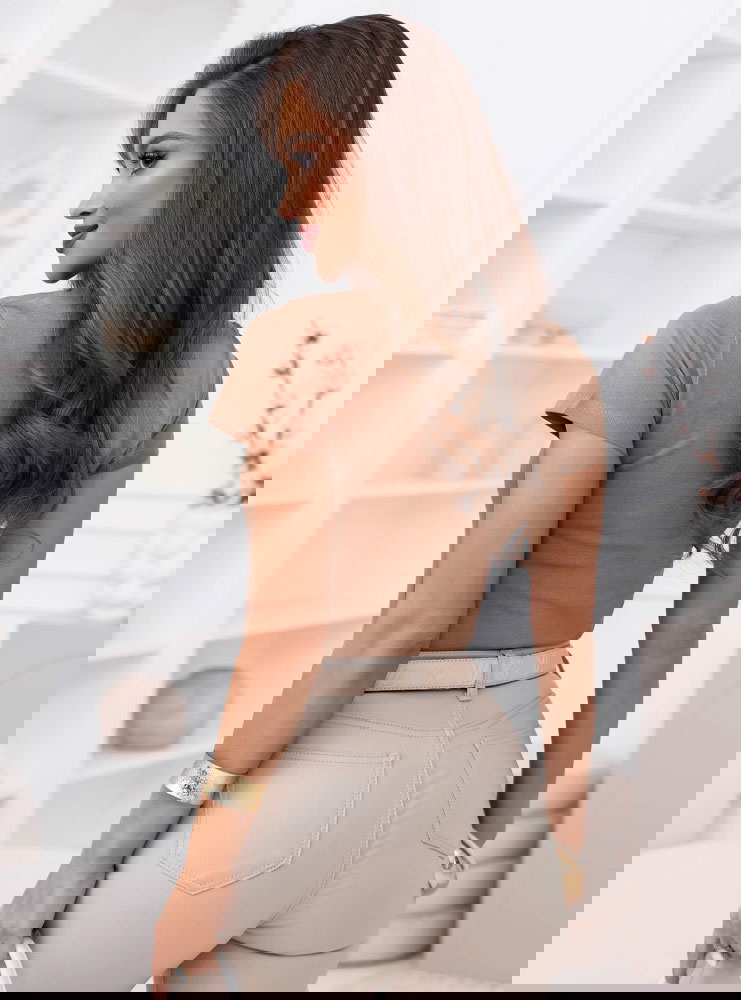Beżowa koszulka na krótki rękaw z ozdobnym nadrukiem Jazmyn