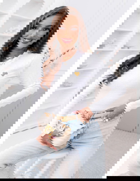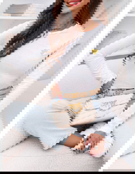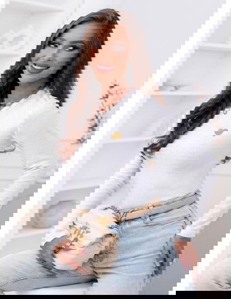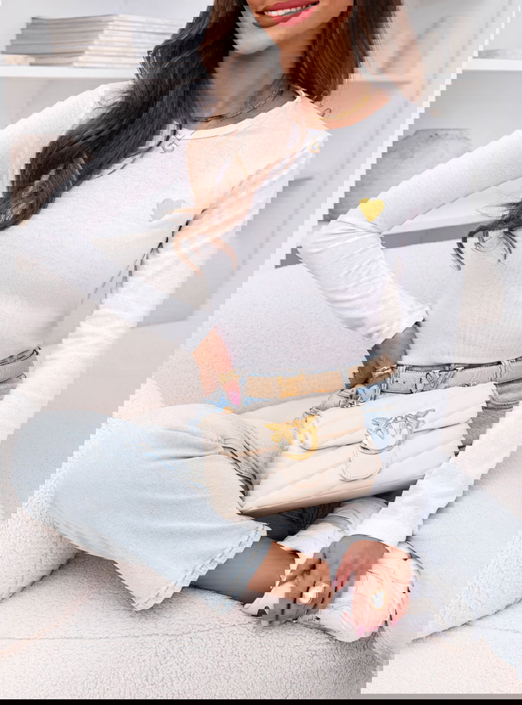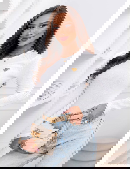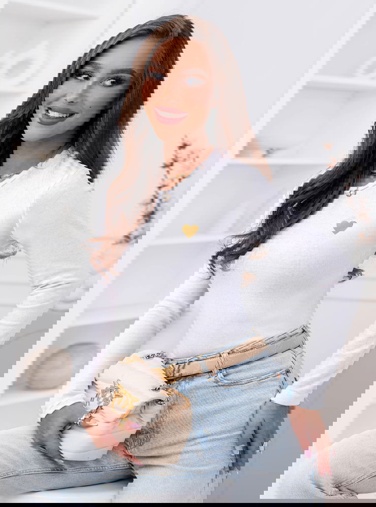 Biała koszulka na długi rękaw z ozdobnym nadrukiem Chatlie to dopracowany basic z delikatnym akcentem. Dopasowany krój podkreśla sylwetkę, a miękka, elastyczna tkanina gładko układa się na ciele. Złote serduszko subtelnie przyciąga uwagę i nadaje całości kobiecego charakteru. To model prosty, ale nie nudny.