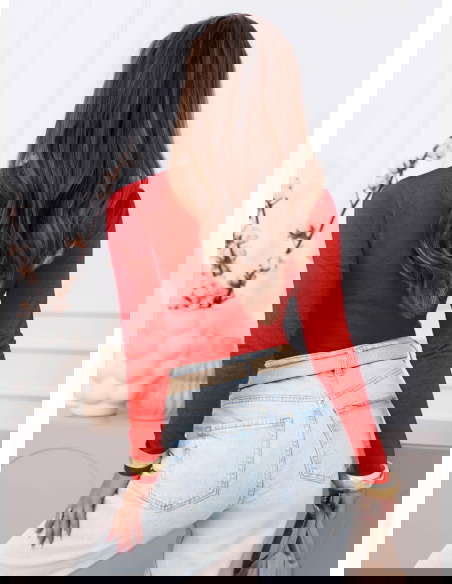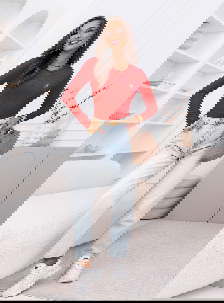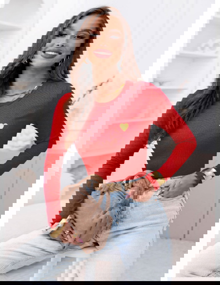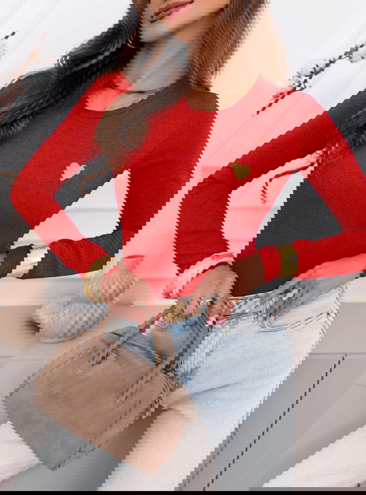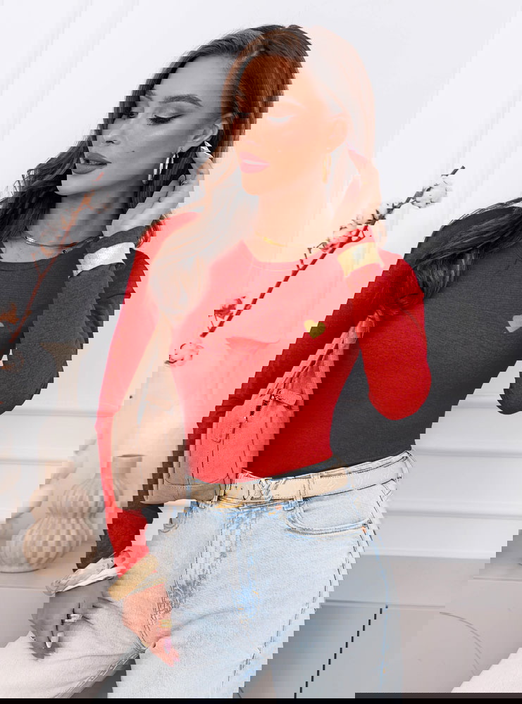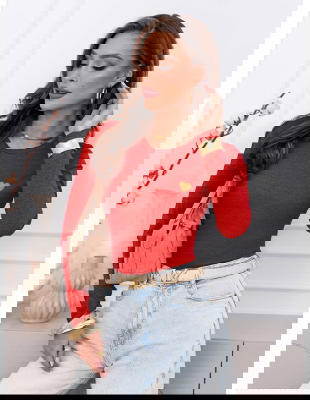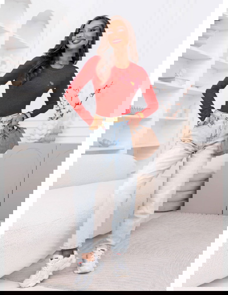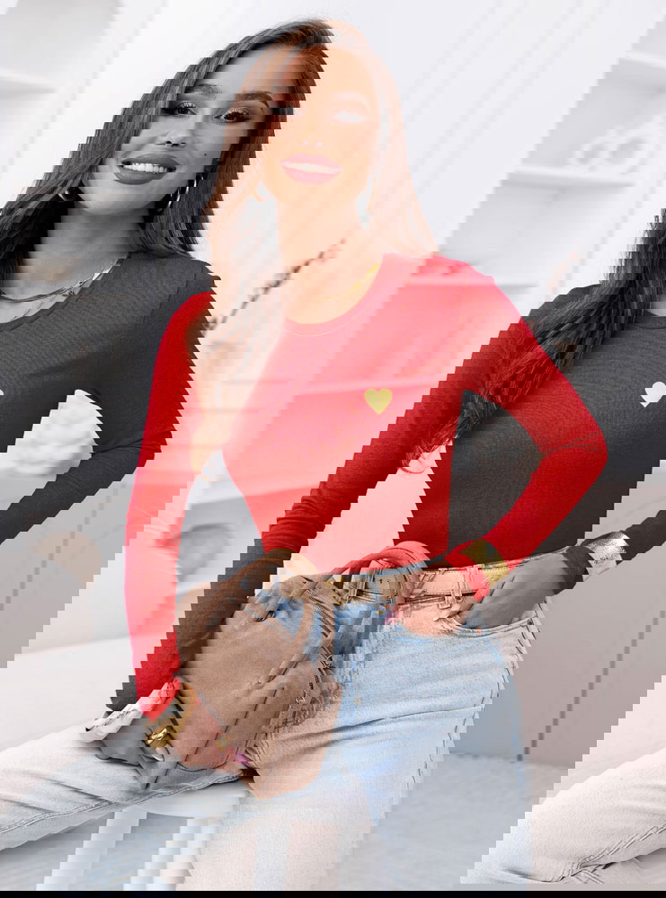 Malinowa koszulka na długi rękaw z ozdobnym nadrukiem Chatlie