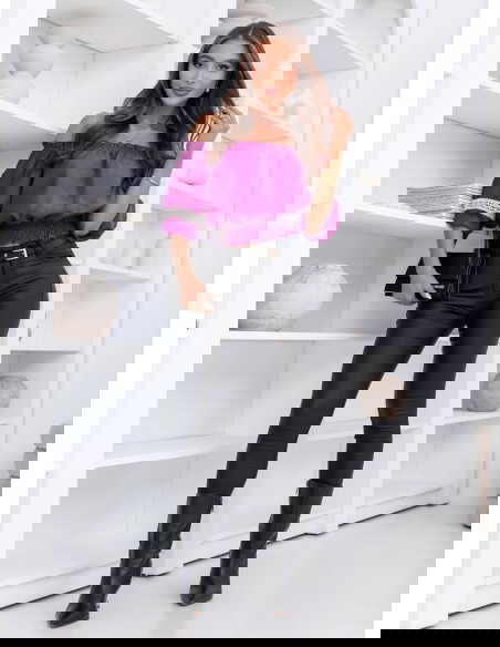 Tkanina jest przewiewna i komfortowa w noszeniu, dzięki czemu bluzka sprawdzi się zarówno w cieplejsze dni, jak i w zestawieniu z lekką marynarką. Fuksja pięknie ożywia stylizację i świetnie wygląda w połączeniu z czernią, beżem czy klasycznym jeansem.