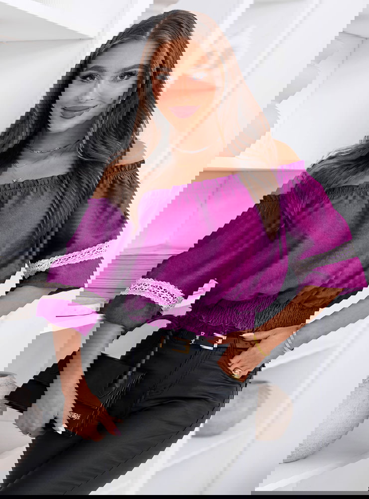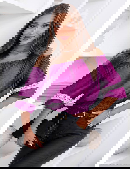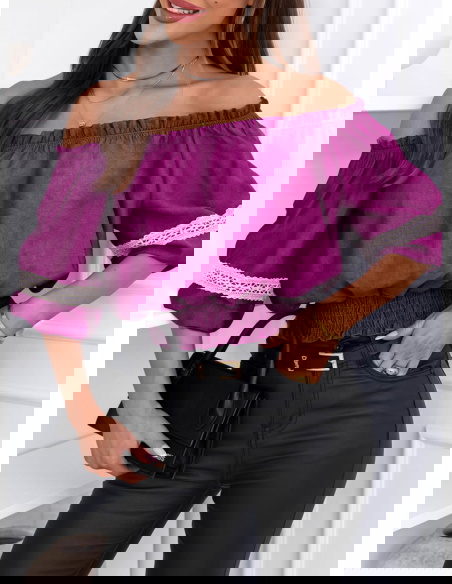Bluzka typu hiszpanka Lawonaa - fuksja