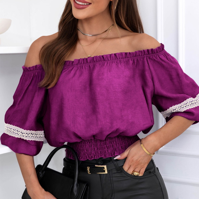 Bluzka typu hiszpanka Lawonaa – fuksja to wyrazista propozycja, która od razu przyciąga uwagę kolorem i fasonem. Odkryte ramiona nadają jej lekkości, a elastyczna góra dobrze dopasowuje się do sylwetki. Marszczony pas podkreśla talię i sprawia, że całość wygląda proporcjonalnie i kobieco. Rękawy o długości 3/4 wykończone są delikatną koronką, która przełamuje intensywny odcień i dodaje subtelnego detalu.