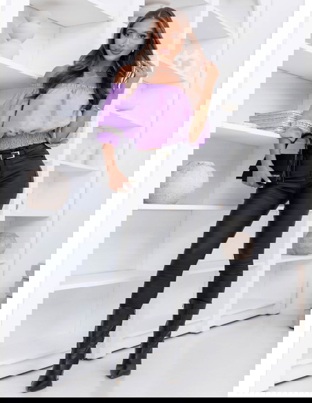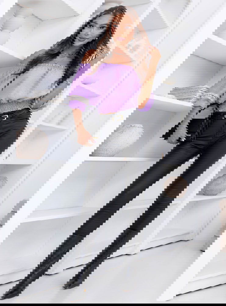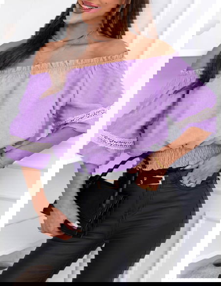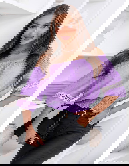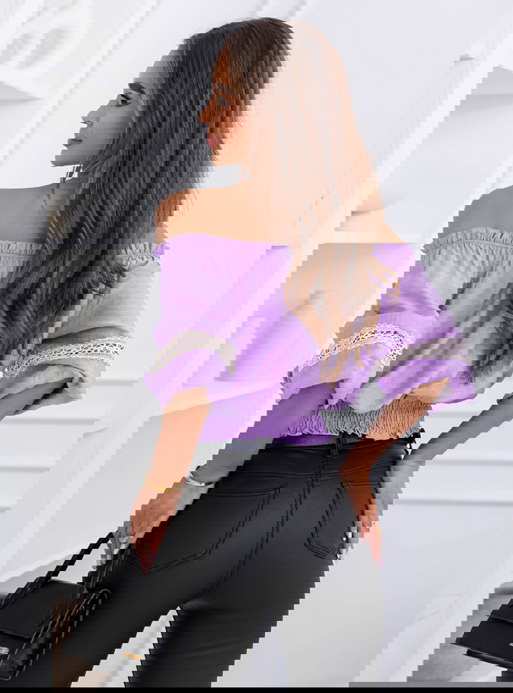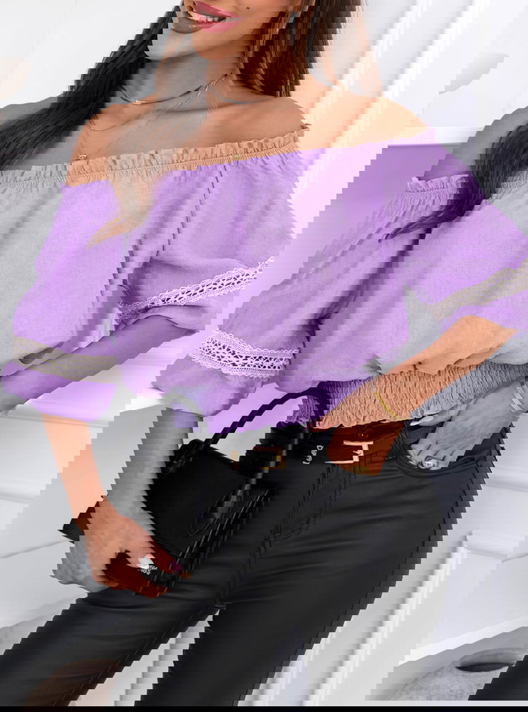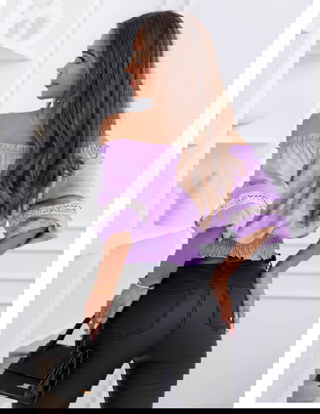 Liliowa bluzka typu hiszpanka Lawonaa