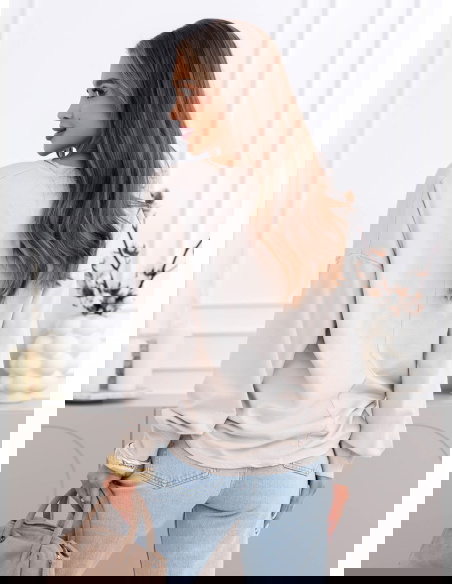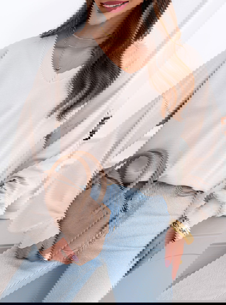 Beżowa bluza oversize z dekoltem w serek Darchelle