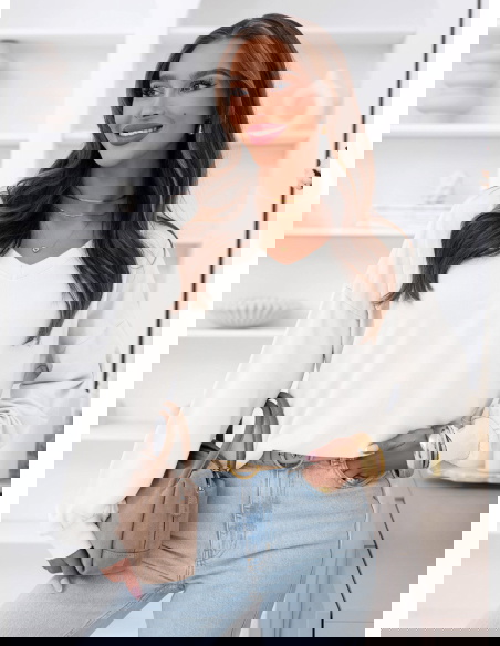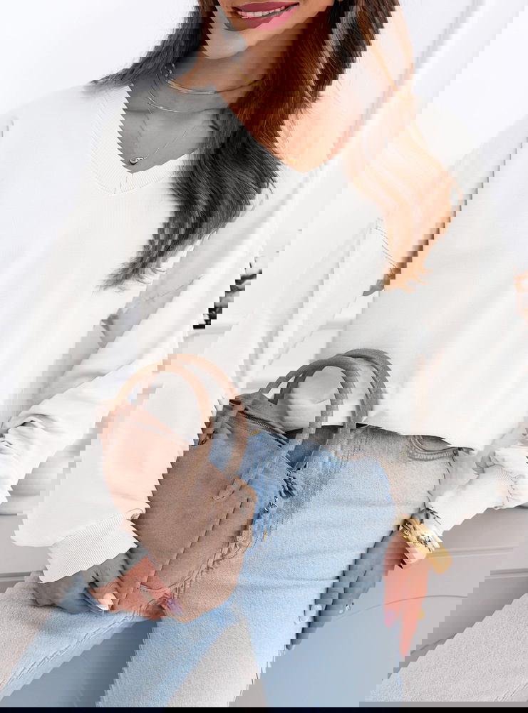 Biała bluza oversize z dekoltem w serek Darchelle to czysta, uniwersalna baza, która pasuje do wszystkiego. Luźny fason daje swobodę, a dekolt w serek ładnie podkreśla linię szyi i wysmukla górę sylwetki. Delikatne ściągacze przy rękawach porządkują całość, dzięki czemu bluza nie wygląda ciężko mimo oversize’owego kroju.