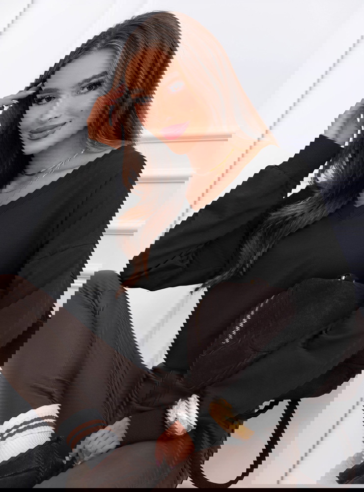Czarna bluza oversize z dekoltem w serek Darchelle