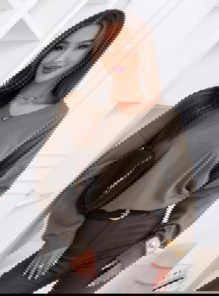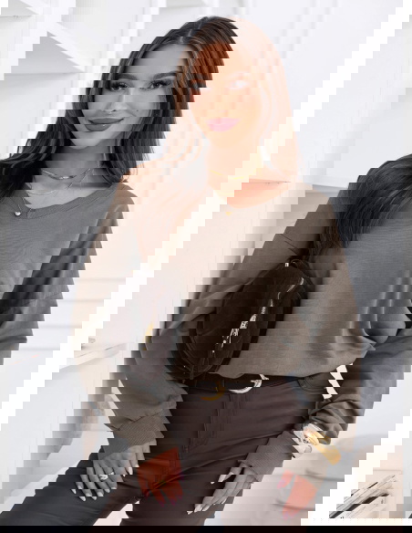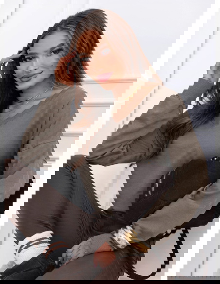 Bluza oversize z dekoltem w serek Darchelle – mocha mousse to swobodna baza, która wygląda lekko, ale ma w sobie charakter. Luźniejszy fason miękko układa się na sylwetce i daje pełen komfort noszenia. Dekolt w serek subtelnie wysmukla górę i dodaje całości kobiecego wykończenia. Kolor mocha mousse ociepla stylizację i świetnie łączy się z beżem, brązem, czernią czy jeansem.