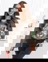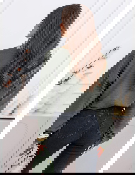 Materiał jest miękki i przyjemny w dotyku, więc spokojnie sprawdzi się na cały dzień – do pracy, na uczelnię czy szybkie wyjście na miasto. To model, który łączy luz z kobiecym wykończeniem i łatwo dopasowuje się do różnych stylów.