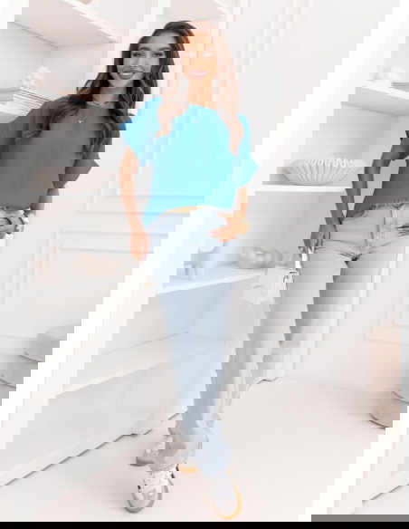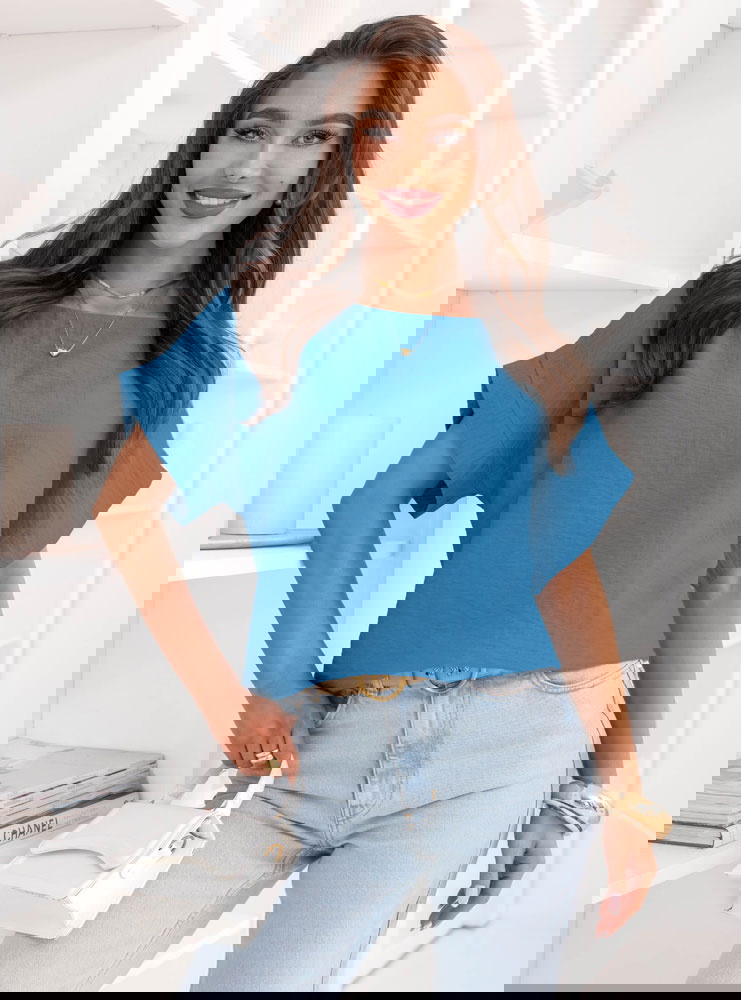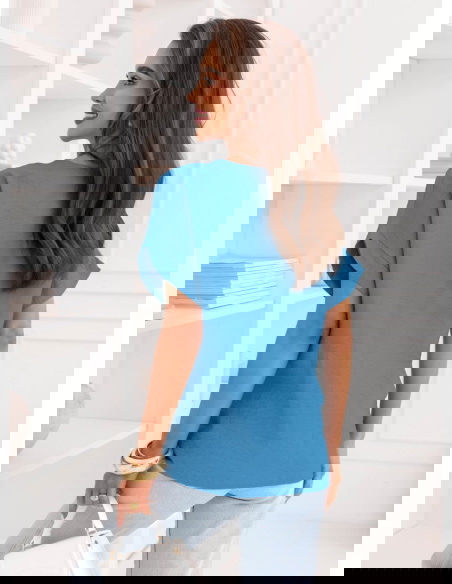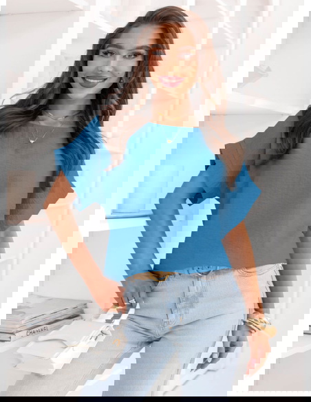 Niebieska bluzka z krótkim rękawem Kandace