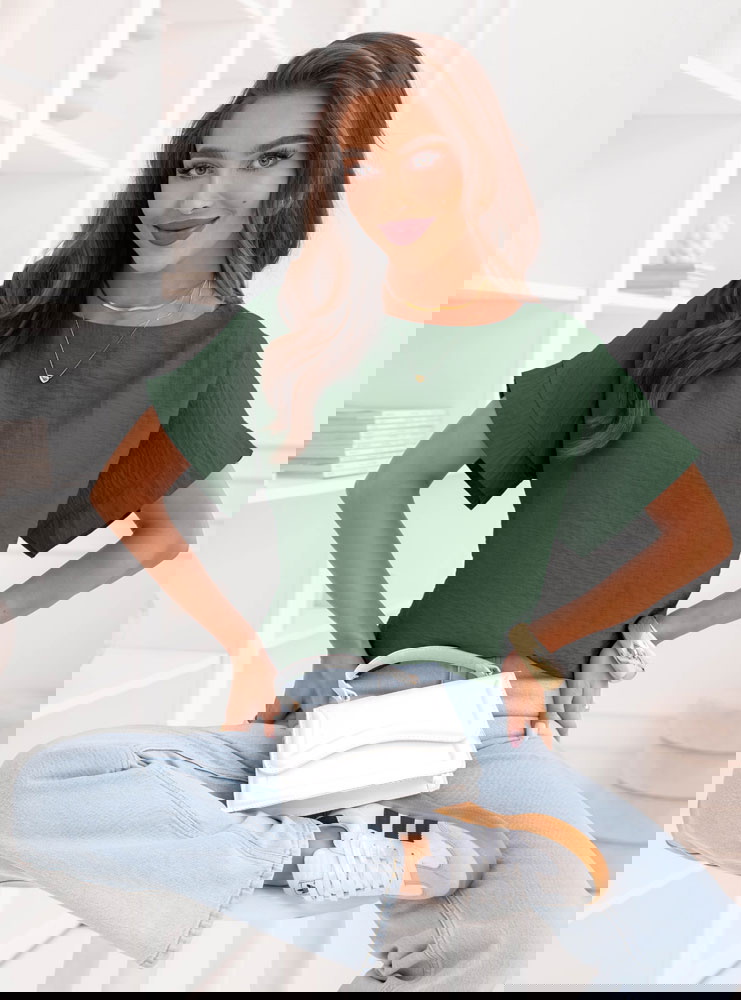Bluzka z krótkim rękawem Kandace - khaki