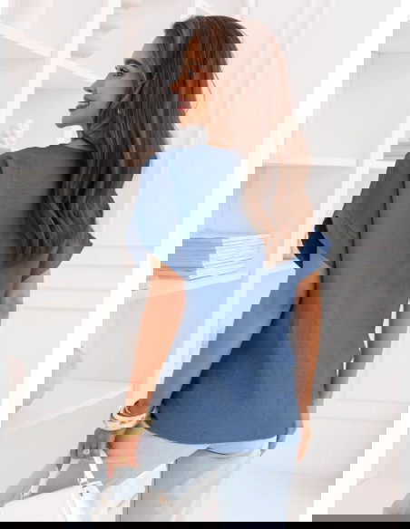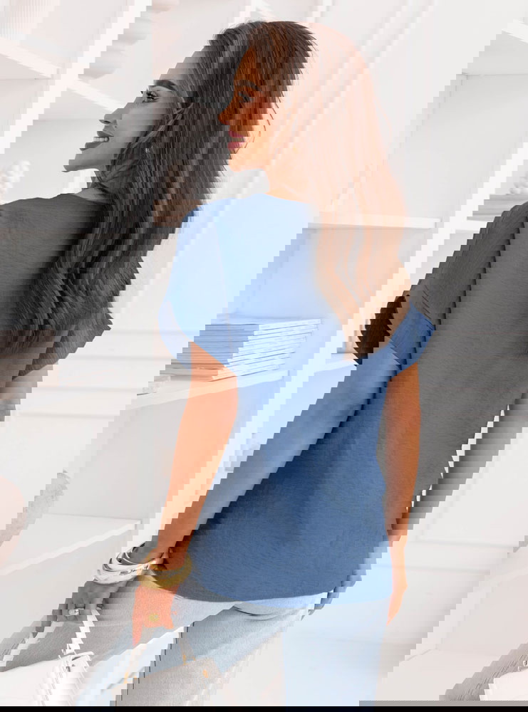 Prosta forma sprawia, że bluzka może stać się stałym elementem codziennej garderoby. To model, który nie wychodzi z mody i daje dużą swobodę stylizacyjną.