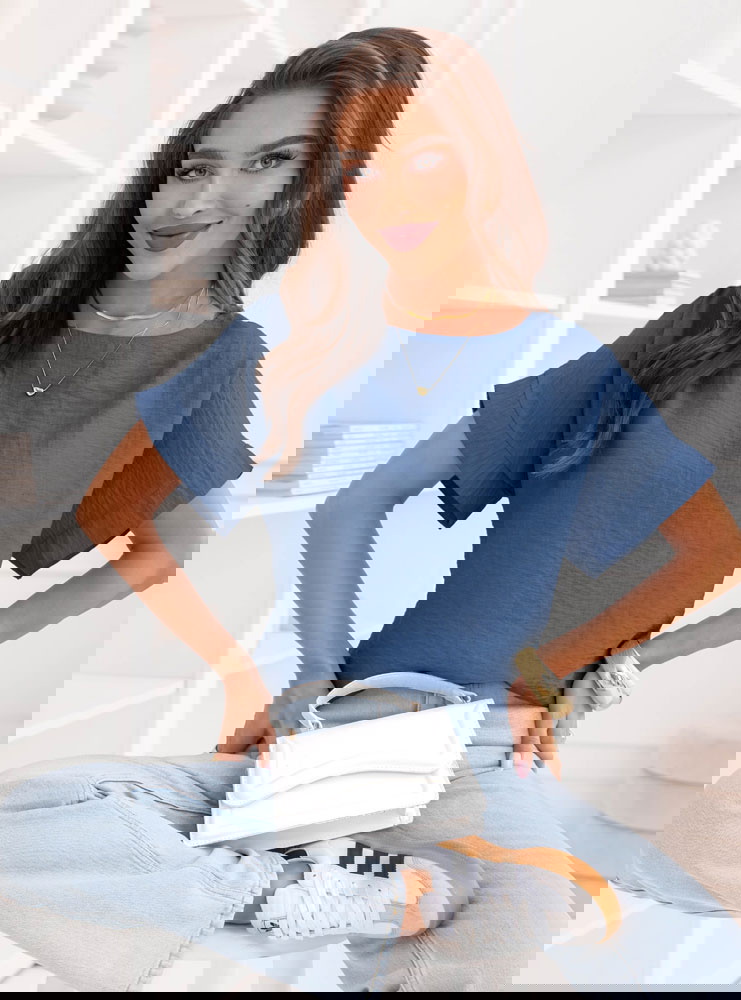 Bluzka z krótkim rękawem Kandace – jeans to wygodna i ponadczasowa propozycja w odcieniu przygaszonego niebieskiego. Luźniejszy fason swobodnie układa się na sylwetce i zapewnia komfort przez cały dzień. Krótki, lekko rozszerzany rękaw dodaje lekkości i sprawia, że całość wygląda proporcjonalnie. Materiał jest przyjemny w dotyku, miękko opływa ciało i dobrze się prezentuje w ruchu. Kolor jeansowy jest uniwersalny, łatwy do zestawienia zarówno z jasnym denimem, jak i bielą, beżem czy czernią.