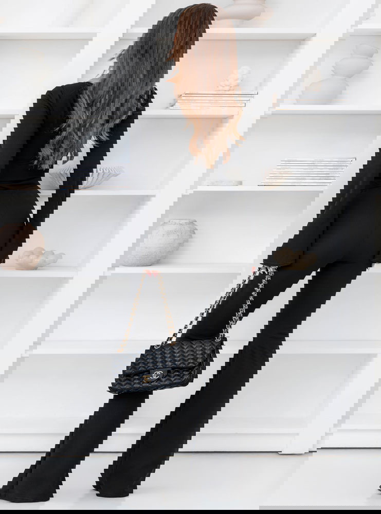 Na co dzień z minimalistyczną torebką i płaskimi butami lub botkami.