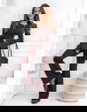 Wysoki stan podkreśla talię i zapewnia stabilne dopasowanie. Elastyczna tkanina dopasowuje się do sylwetki, dzięki czemu komplet jest wygodny w noszeniu przez cały dzień. Czekoladowy kolor jest ciepły i elegancki, a jednocześnie łatwy do zestawienia z beżem, czernią czy złotymi dodatkami. Krój podkreśla kobiece kształty i zachowuje harmonijne proporcje.