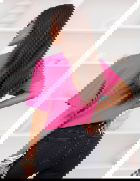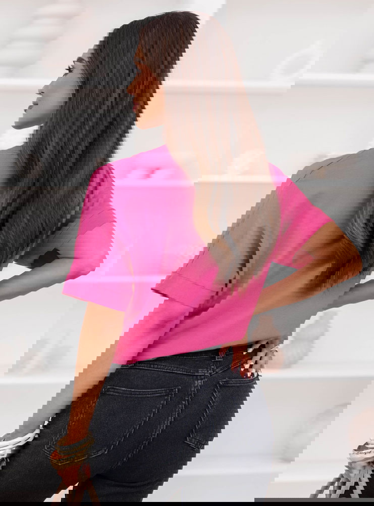Materiał jest miękki i komfortowy w noszeniu, dzięki czemu bluzka sprawdzi się przez cały dzień. Swobodna forma pozwala nosić ją zarówno wpuszczoną w spodnie, jak i luźno puszczoną. Intensywny kolor dobrze łączy się z czernią, denimem czy beżowymi dodatkami. To propozycja dla osób, które lubią prosty fason w bardziej zdecydowanym wydaniu.