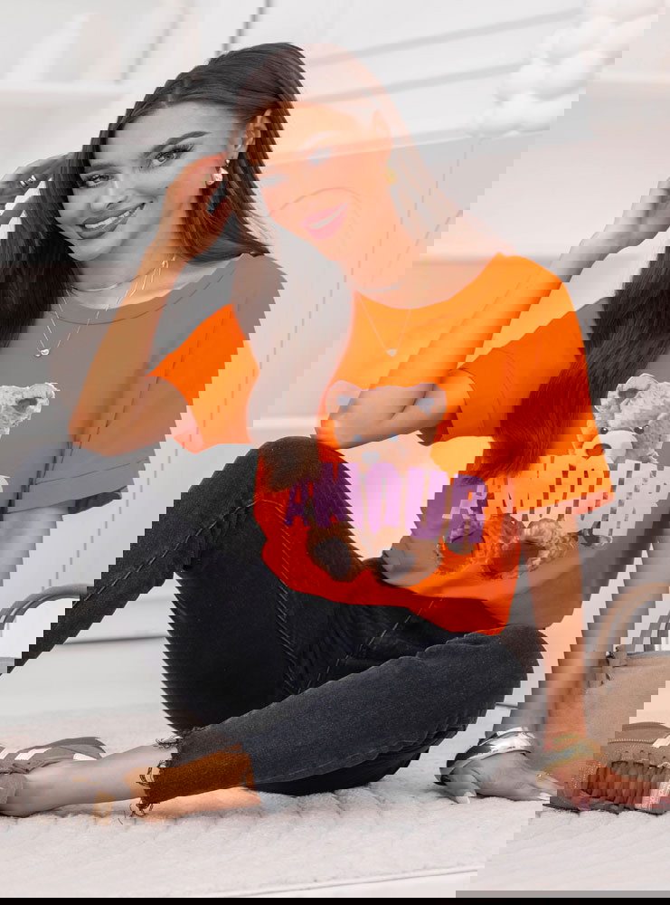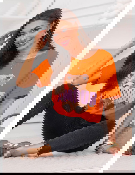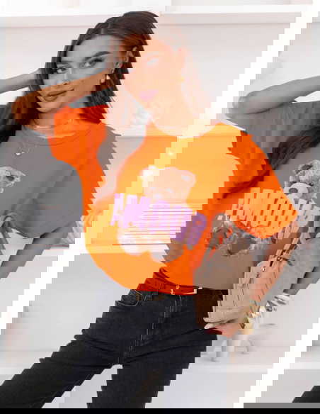Pomarańczowa bluzka z ozdobnym nadrukiem Jimmia