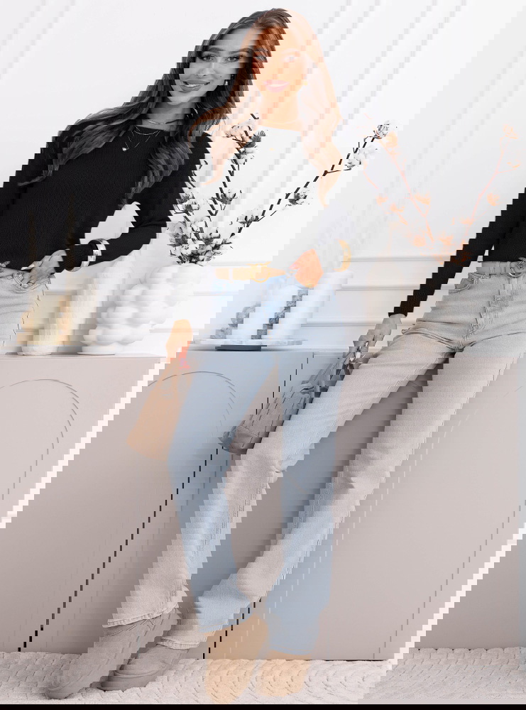Na co dzień z jasnymi jeansami i paskiem w talii.