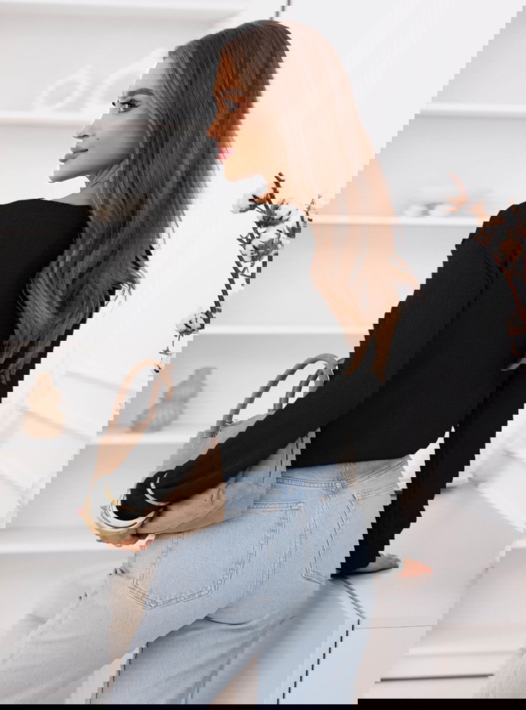 Czarny sweter z dekoltem w łódkę Itsaso to model o prostej, dopracowanej formie, który subtelnie podkreśla linię ramion. Dekolt w łódkę delikatnie odsłania obojczyki i optycznie poszerza górną część sylwetki, co pomaga wyrównać proporcje. Fason jest lekko dopasowany, ale nie przylega zbyt mocno do ciała, dzięki czemu zapewnia swobodę. Długie rękawy i miękka dzianina sprawiają, że sweter dobrze sprawdzi się w codziennym noszeniu. Czerń nadaje mu ponadczasowy, elegancki charakter.