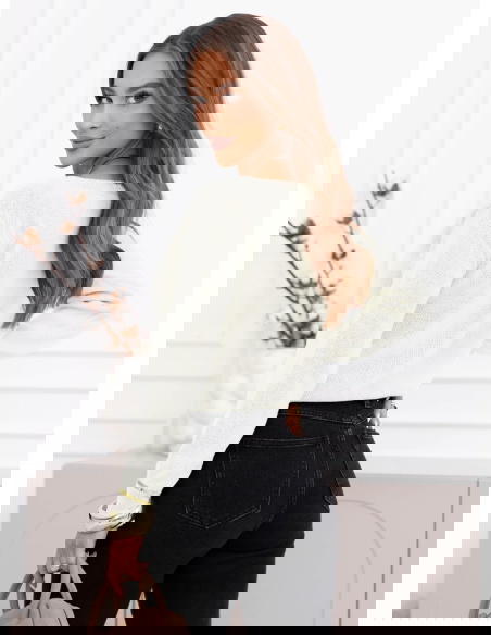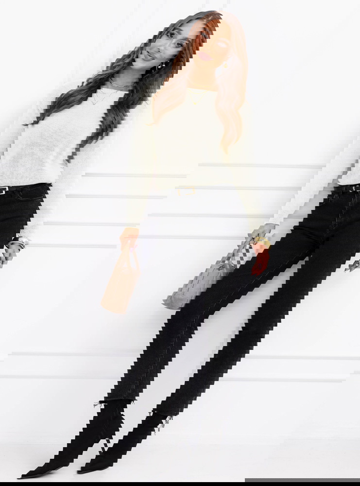 Dzianina jest miękka i przyjemna w noszeniu, sprawdzi się zarówno solo, jak i pod marynarką czy płaszczem. Jasny kolor optycznie rozświetla twarz i dobrze komponuje się z czernią, beżem, brązami oraz jasnym denimem. Prosty krój daje dużą swobodę stylizacji i pozwala traktować sweter jako bazę do wielu zestawów.