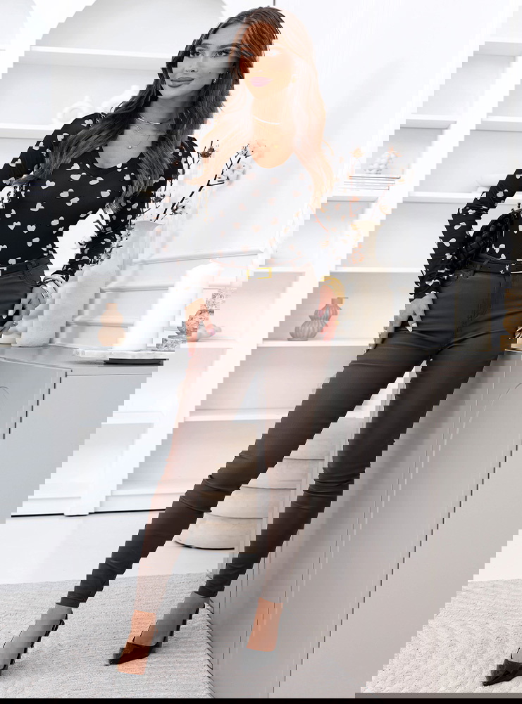 To bluzka, która łączy kobiecość z odrobiną pazura. Wzór przyciąga uwagę, ale całość nadal pozostaje stylowa i łatwa do wystylizowania. Materiał dobrze układa się na sylwetce i nie traci kształtu, dzięki czemu całość wygląda estetycznie przez cały dzień.