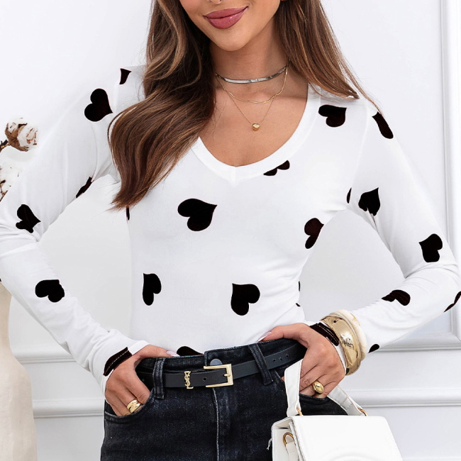 Czarna bluzka w serduszka i dekoltem w serek Landrada