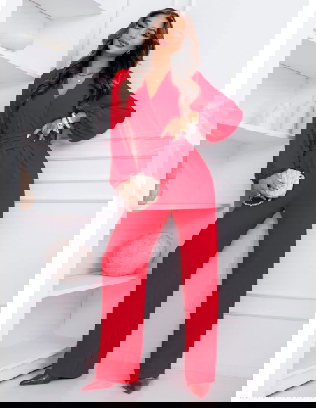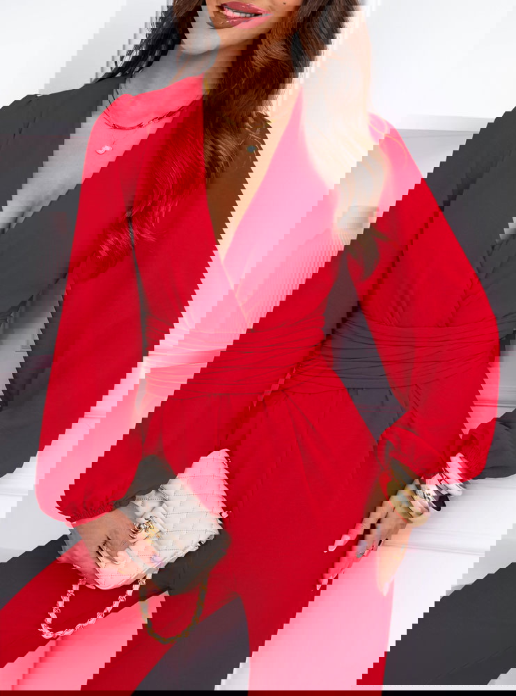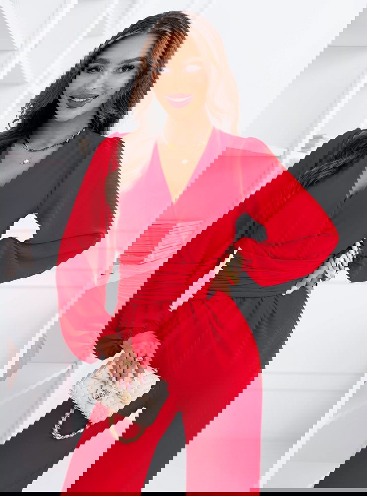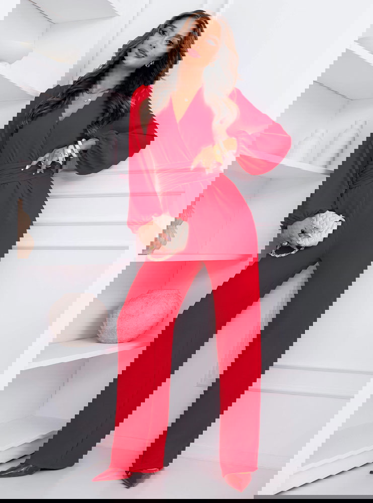 Podkreślona talia, wydłużona linia nóg i mocny kolor sprawiają, że to kombinezon, który buduje stylizację w jednym kroku.