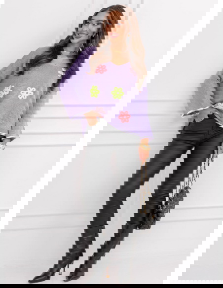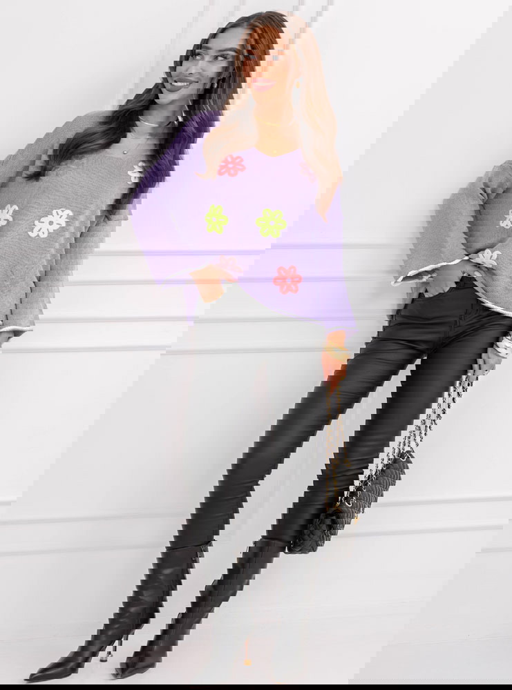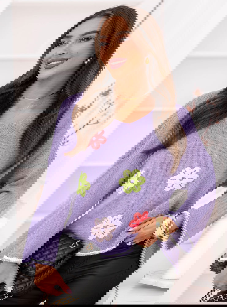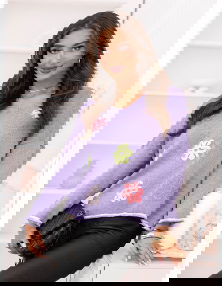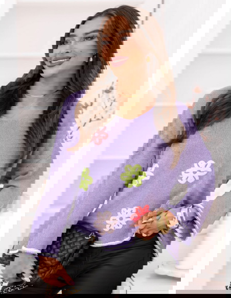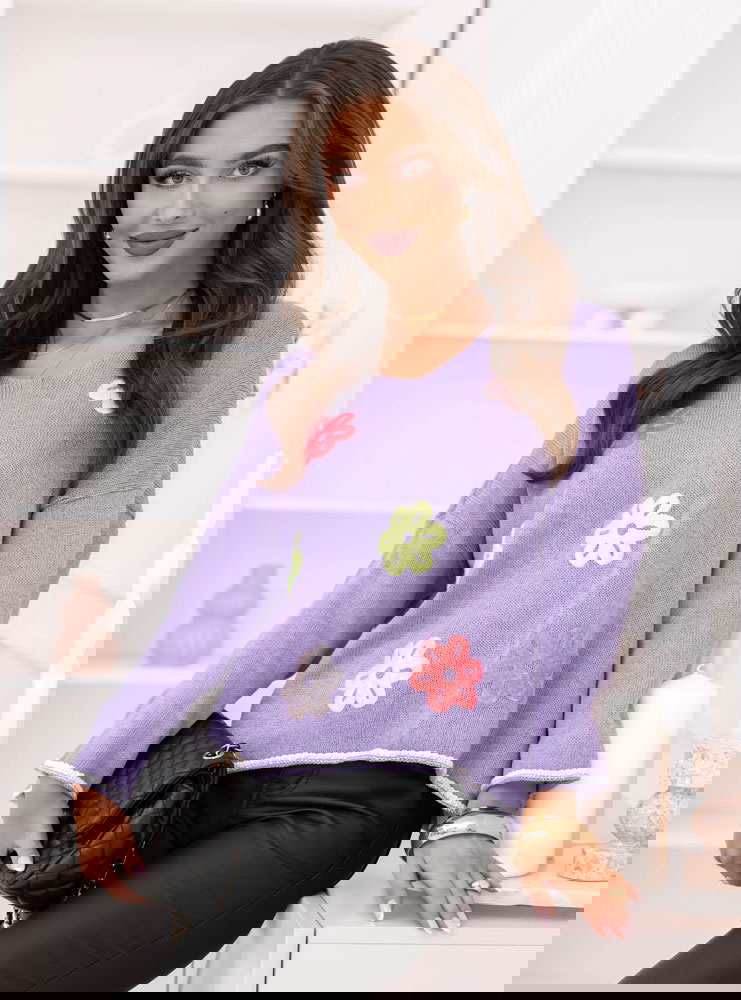 Liliowy sweter z ozdobnymi kwiatkami Jezemae