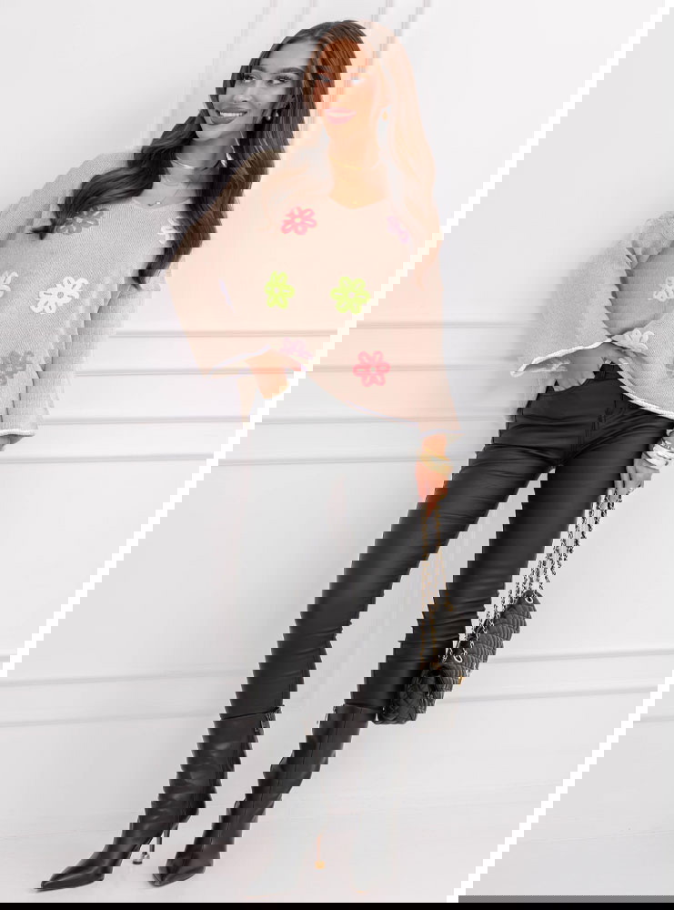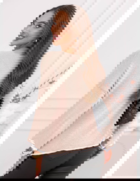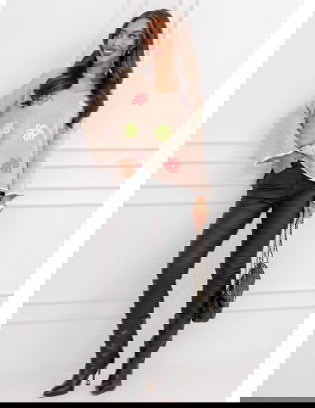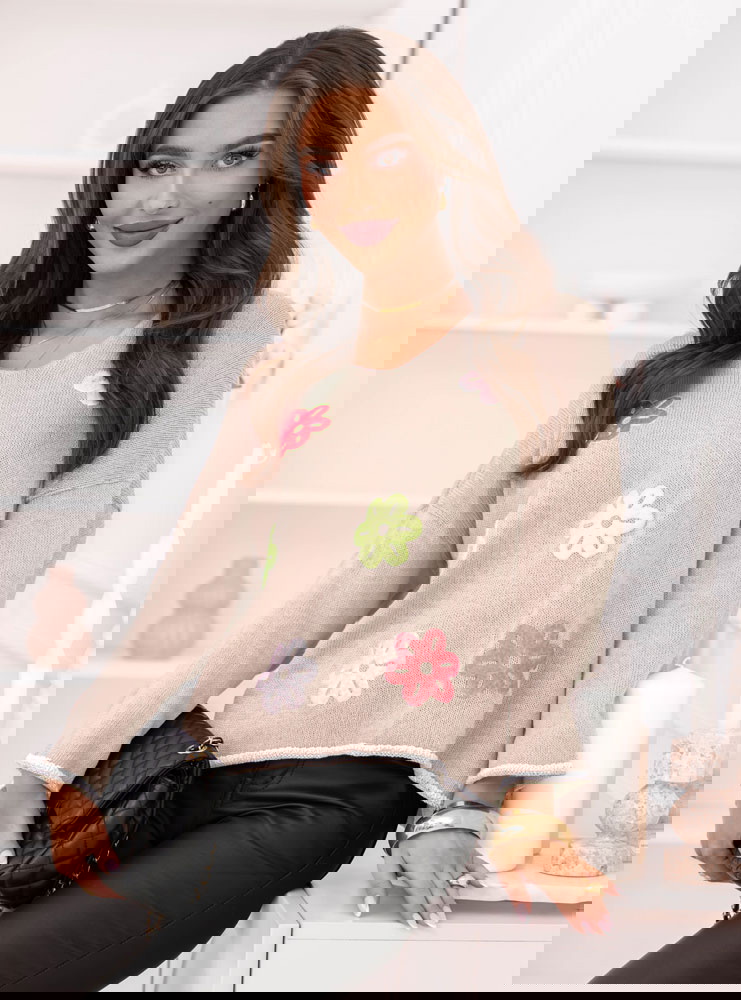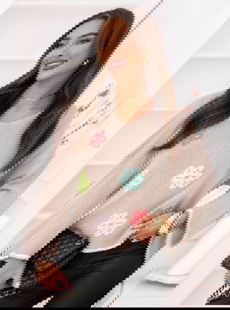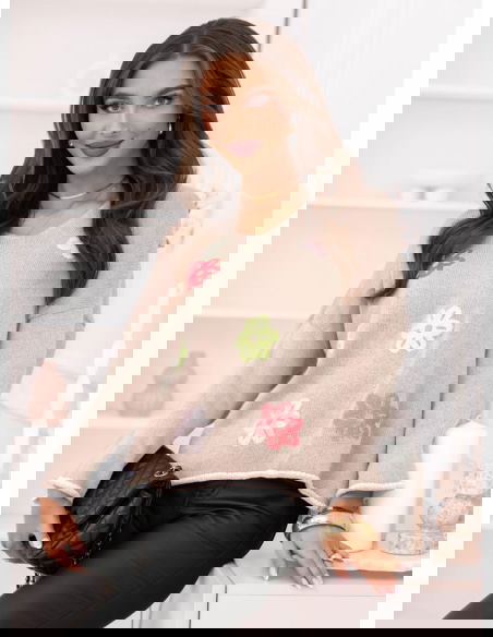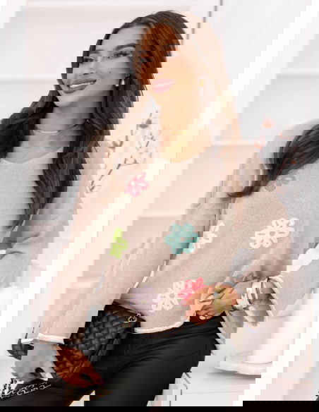 Beżowy sweter z ozdobnymi kwiatkami Jezemae