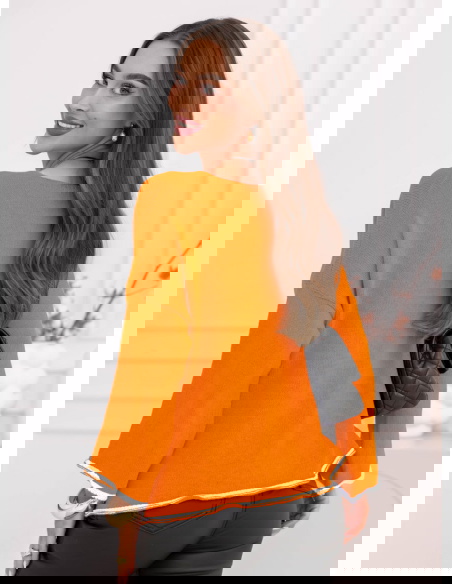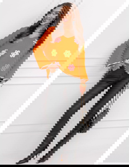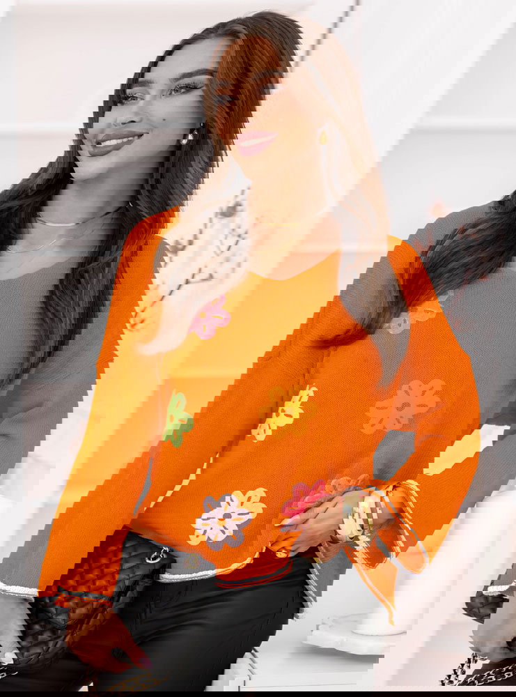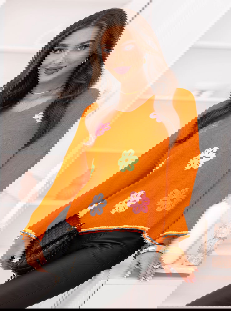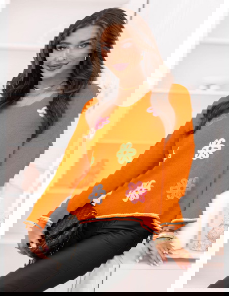 Pomarańczowy sweter z ozdobnymi kwiatkami Jezemae