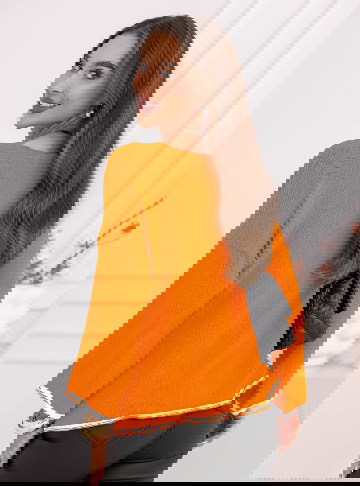To propozycja dla kobiet, które lubią mocny kolor w garderobie, ale w zrównoważonym wydaniu. Pomarańcz dobrze komponuje się z czernią, ciemnym denimem i beżem. Wystarczy prosty dół, aby całość wyglądała spójnie.