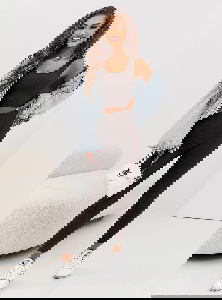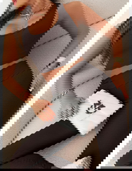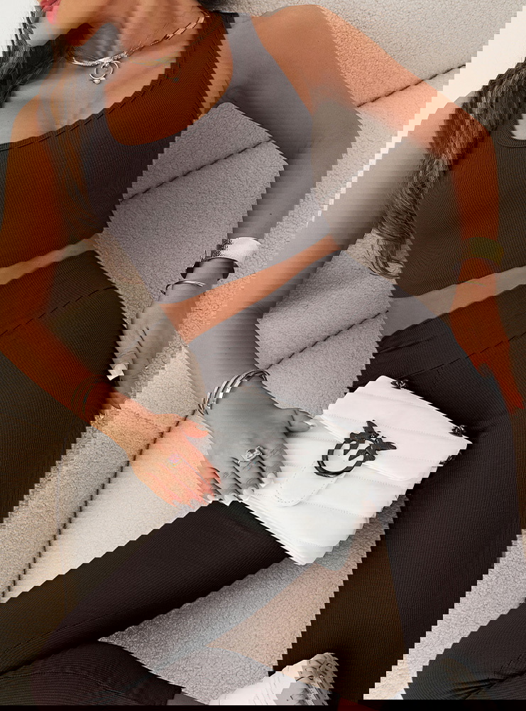 To model, który możesz nosić razem albo osobno. Top dobrze wygląda z jeansami czy szortami, a legginsy sprawdzą się z oversize’ową bluzą lub koszulą. Kolor świetnie komponuje się z bielą, beżem i złotymi dodatkami.