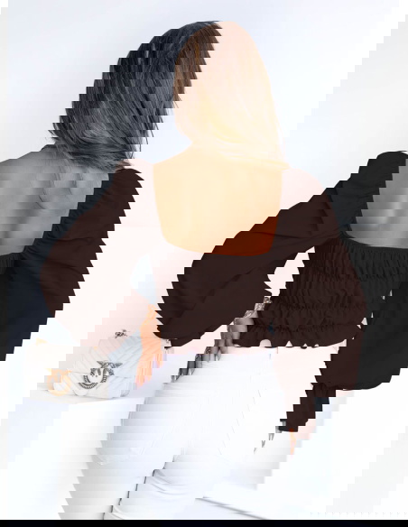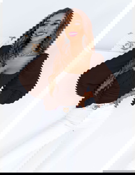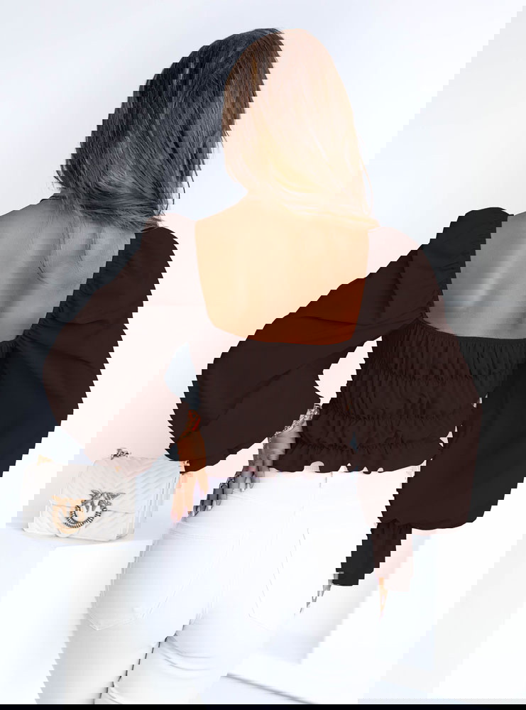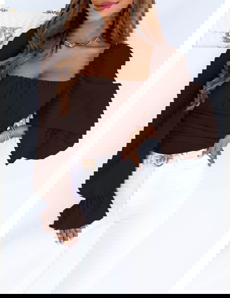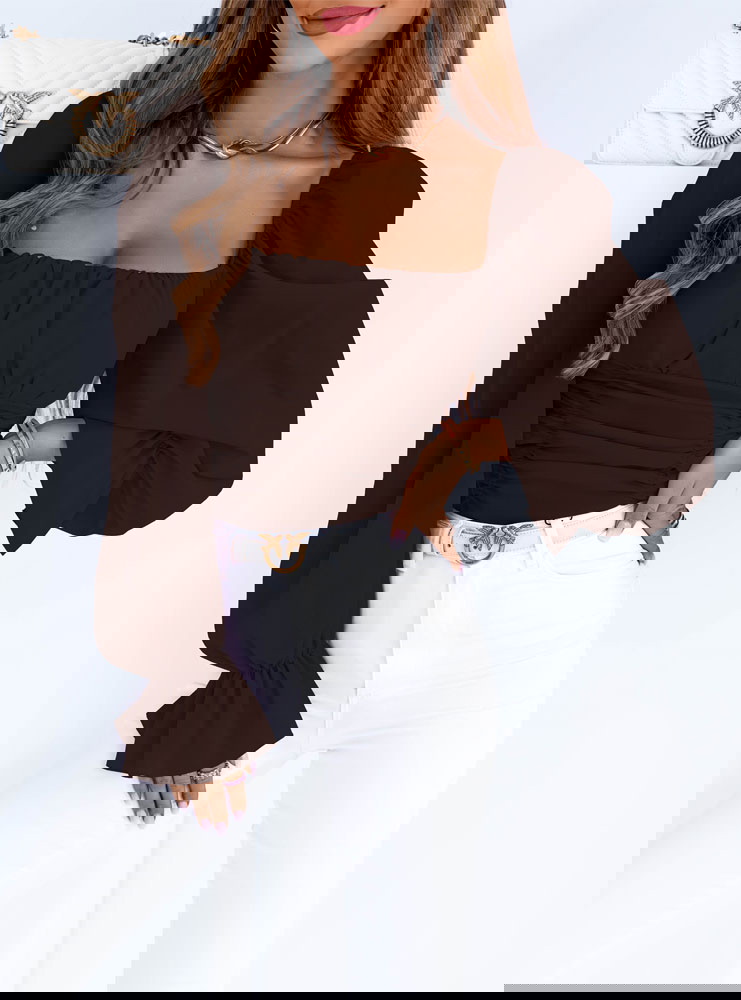 Czekoladowa szyfonowa bluzka typu hiszpanka Sellenies