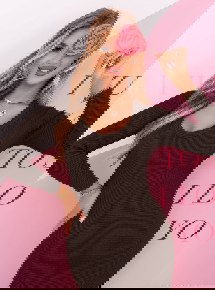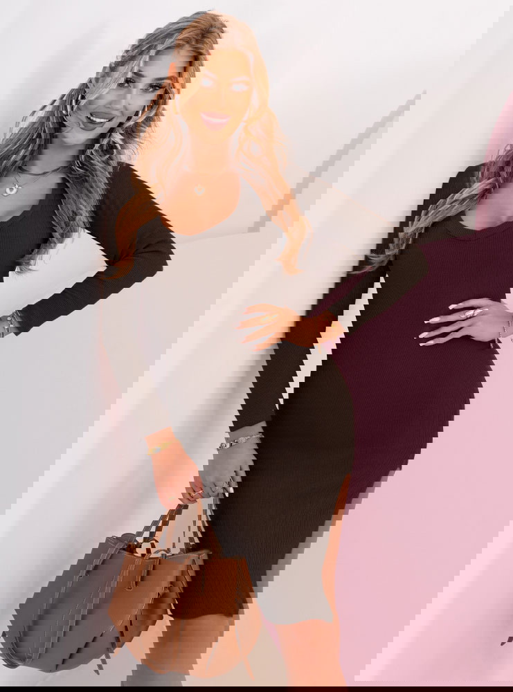 Czekoladowa prążkowana dopasowana sukienka z dekoltem w serek Corene to model o prostej, kobiecej linii, który podkreśla sylwetkę bez zbędnych detali. Dopasowany krój akcentuje talię i biodra, a elastyczna prążkowana dzianina miękko przylega do ciała. Dekolt w serek wysmukla górę i nadaje proporcji całej formie. Długie rękawy równoważą dopasowany fason, a rozcięcie na nodze dodaje lekkości i optycznie wydłuża sylwetkę. Głęboki czekoladowy kolor wygląda elegancko i łatwo łączy się z beżem, karmelowym brązem czy złotą biżuterią.