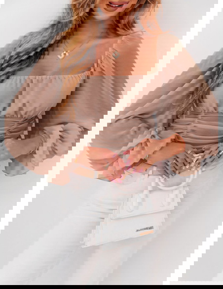 Szyfonowa bluzka typu hiszpanka Kaycee - mocha mousse