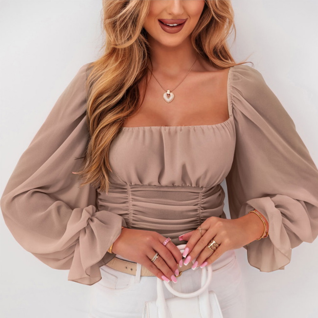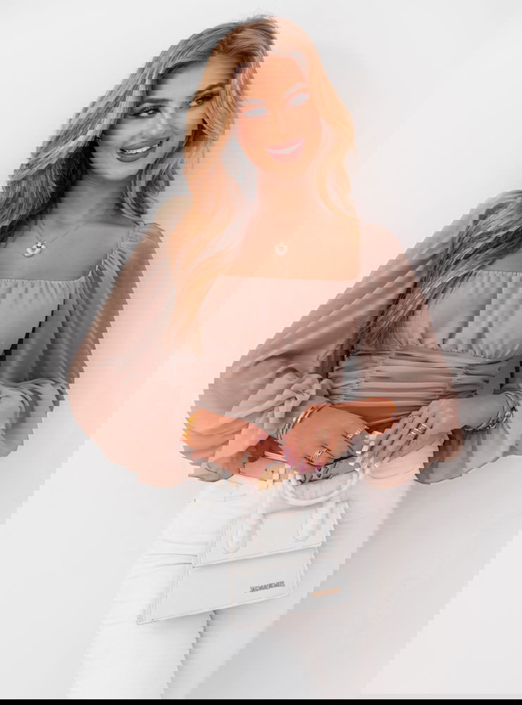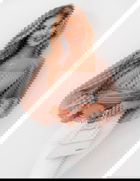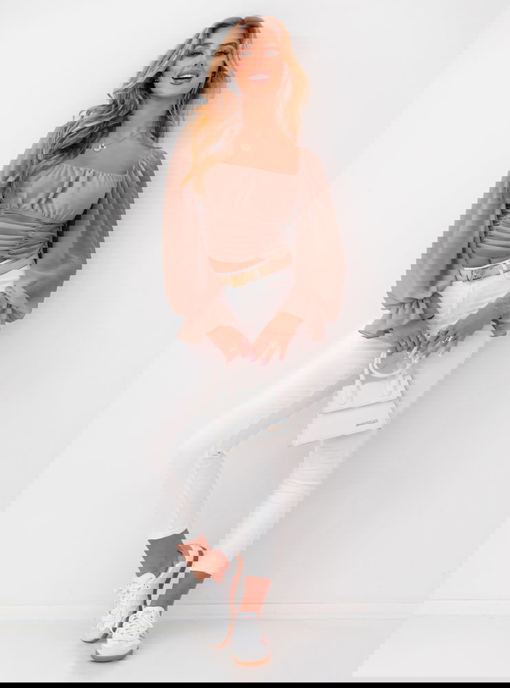 Szyfonowa bluzka typu hiszpanka Kaycee - mocha mousse to kobiecy model o dopracowanym, efektownym kroju. Kwadratowy dekolt pięknie eksponuje obojczyki i nadaje sylwetce lekkości. Dopasowana talia z marszczeniami podkreśla proporcje i modeluje linię ciała. Bufiaste rękawy dodają objętości i tworzą wyraźny kontrast z przylegającą górą. Szyfon jest zwiewny, delikatny i komfortowy w noszeniu. Odcień mocha mousse wprowadza ciepły, elegancki ton, który dobrze łączy się z bielą, beżem i złotą biżuterią.