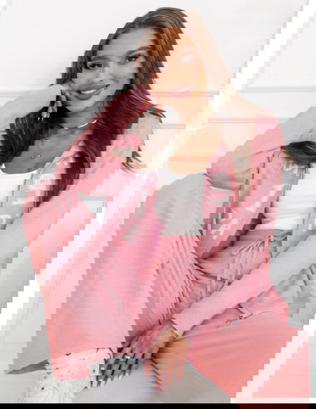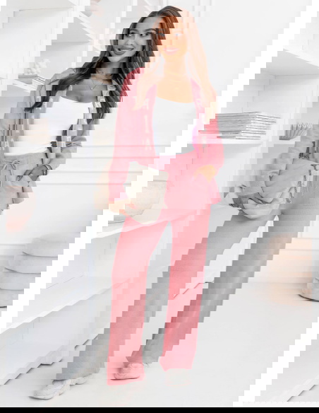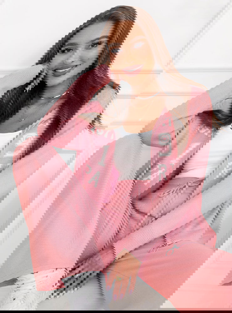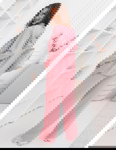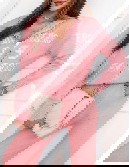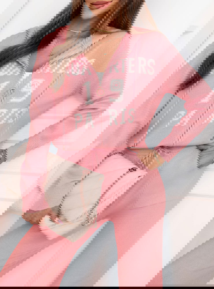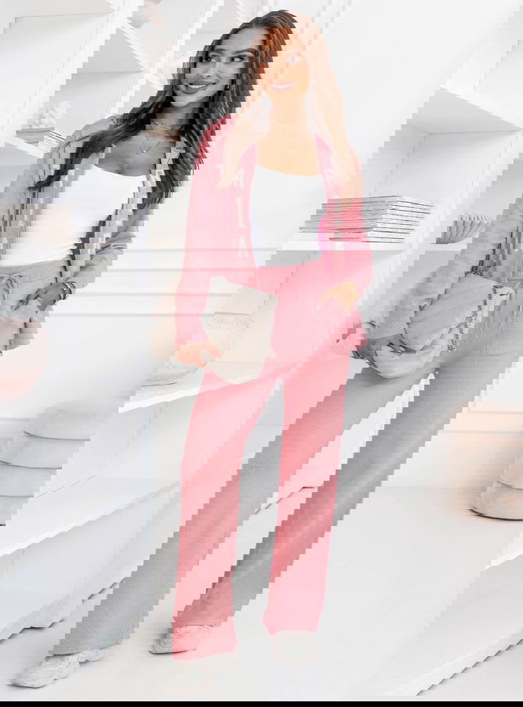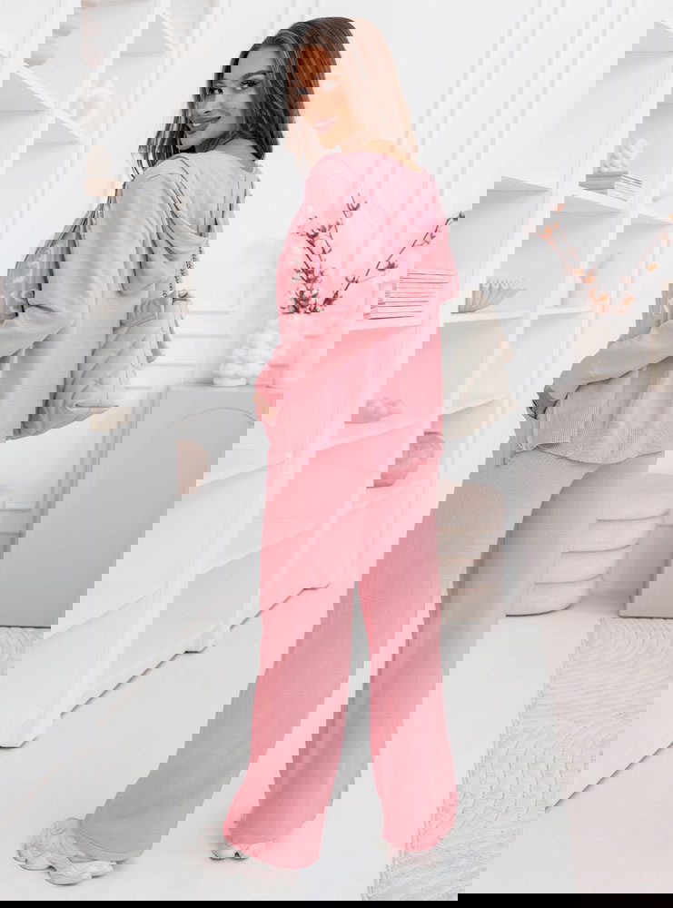 Pudrowy dzianinowy komplet bluza + spodnie Memree