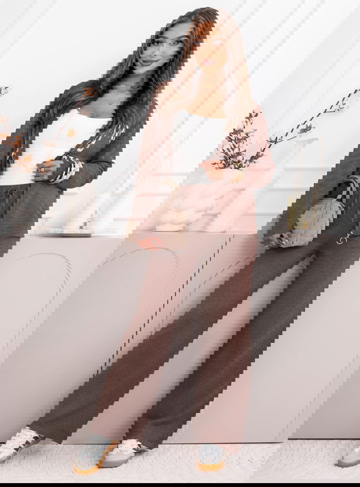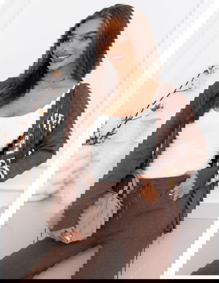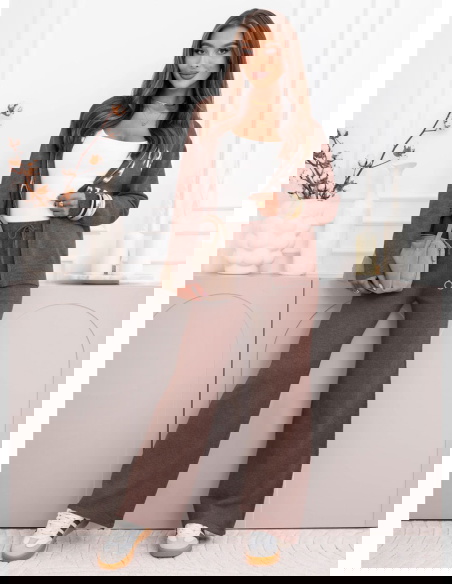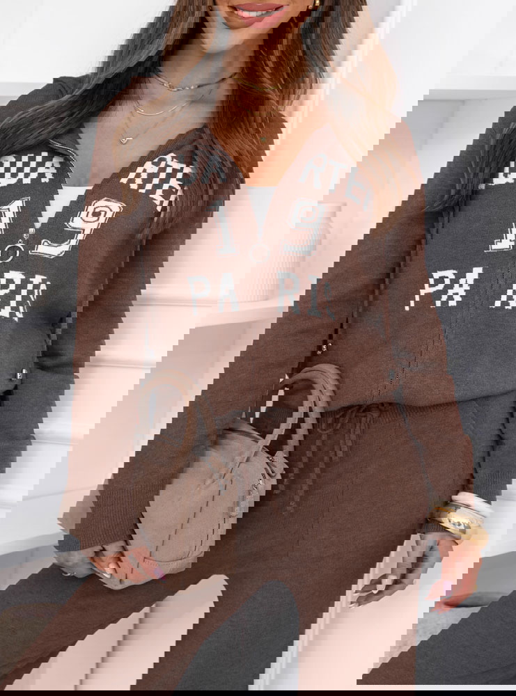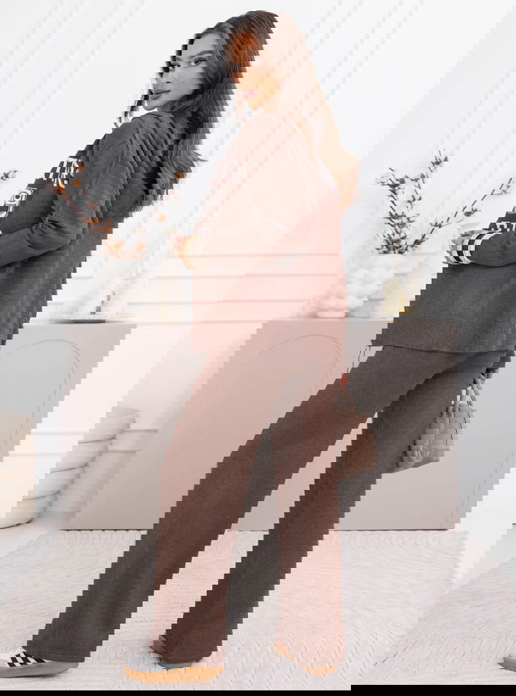 Czekoladowy dzianinowy komplet bluza + spodnie Memree