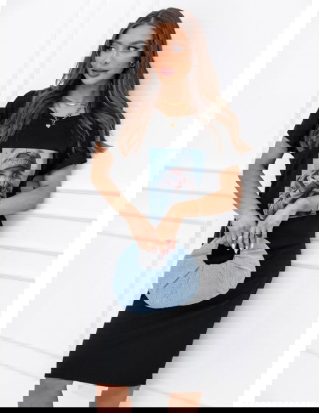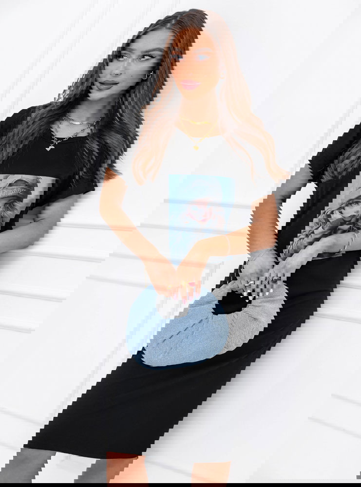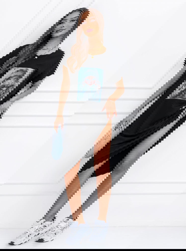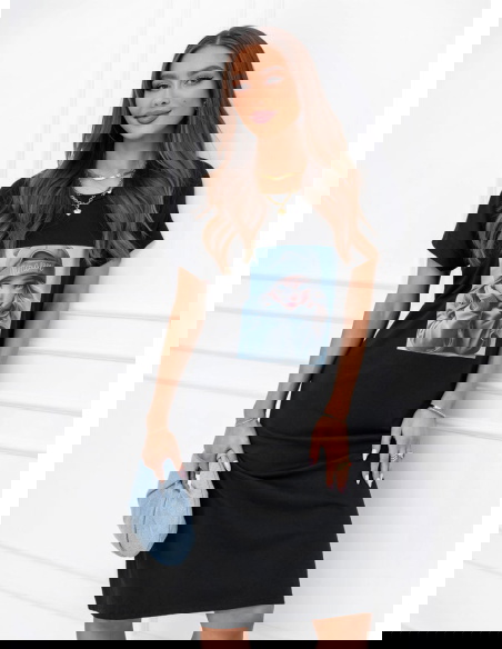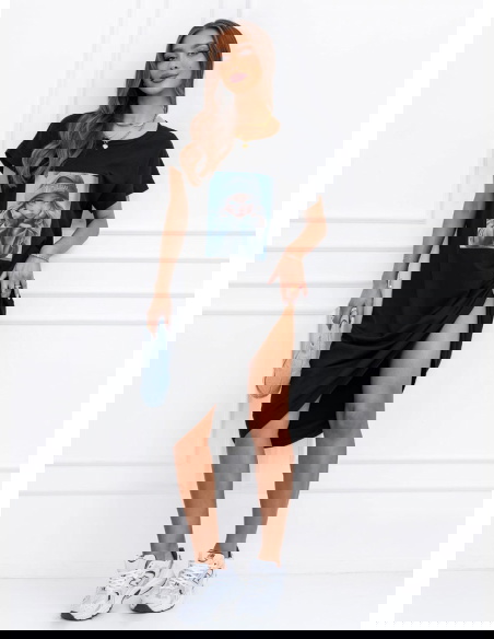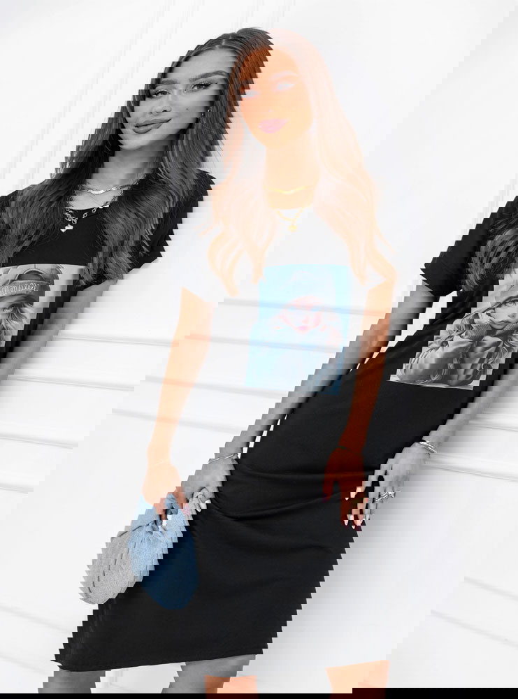 Czarna sukienka z ozdobnym nadrukiem Lakeydra