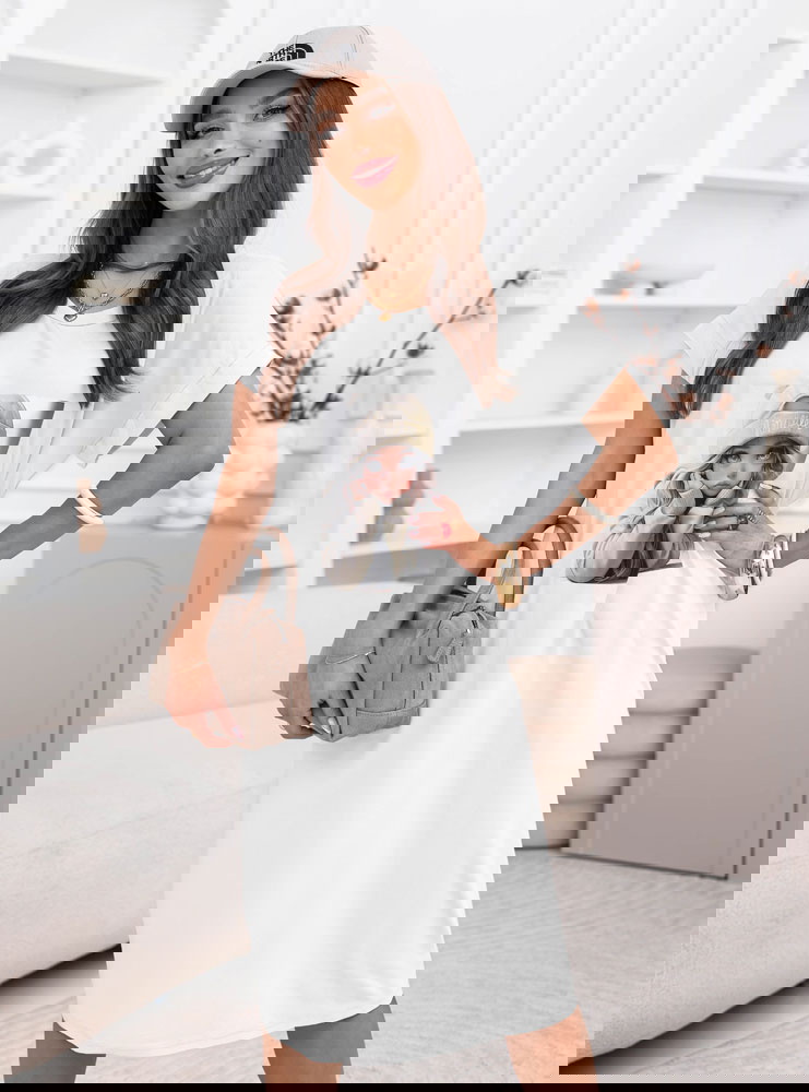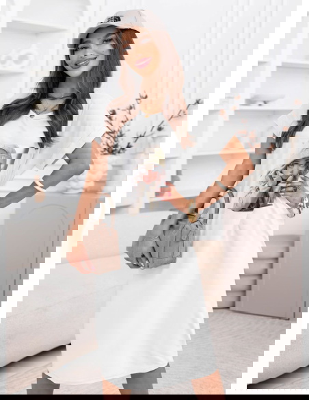Biała sukienka z ozdobnym nadrukiem Lakeydra