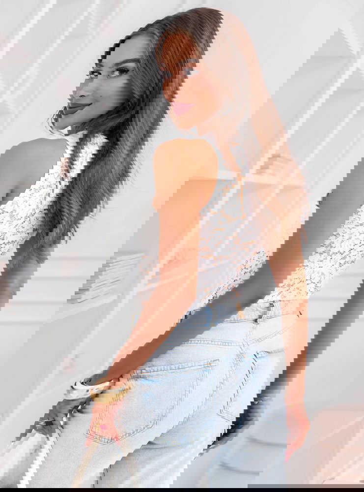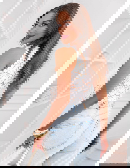 Białe koronkowe body na ramiączkach Ethelinda