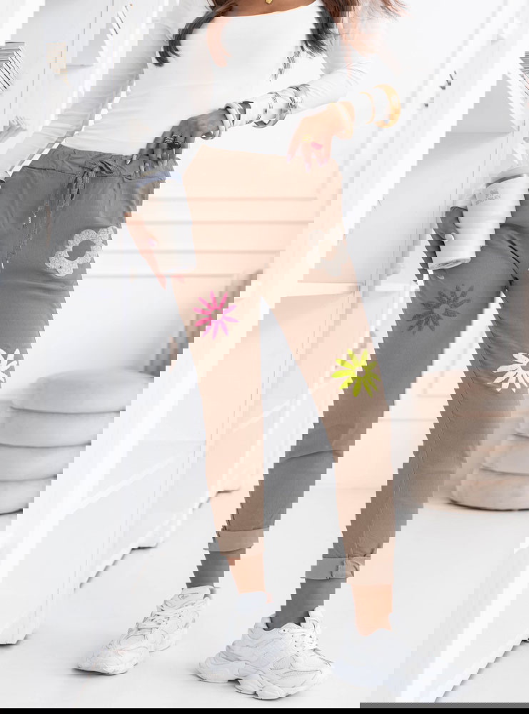 Spodnie z ozdobnymi naszywkami Sendee - mocha mousse
