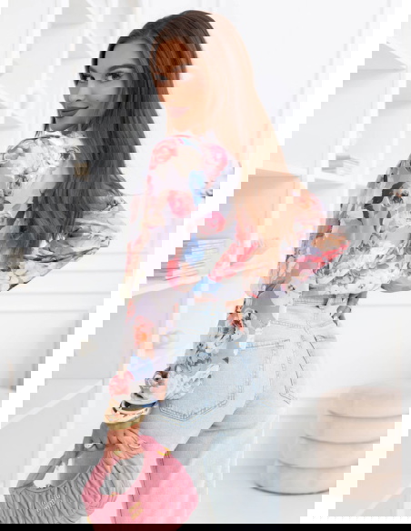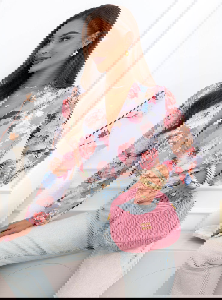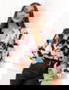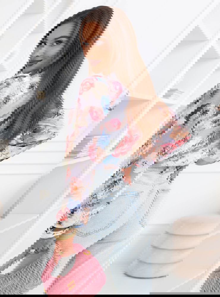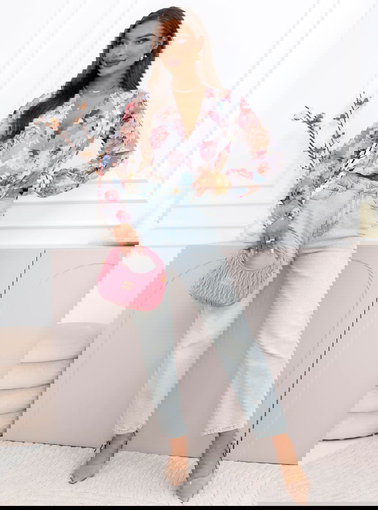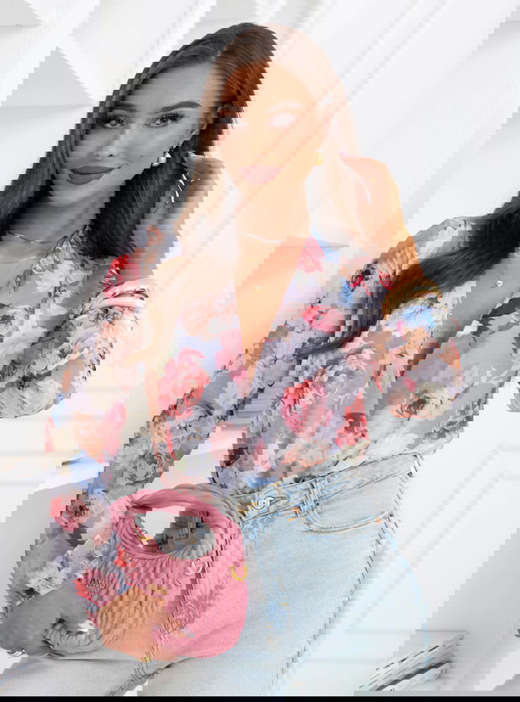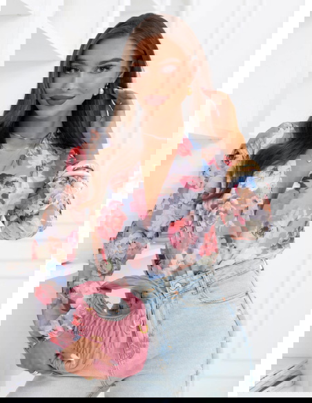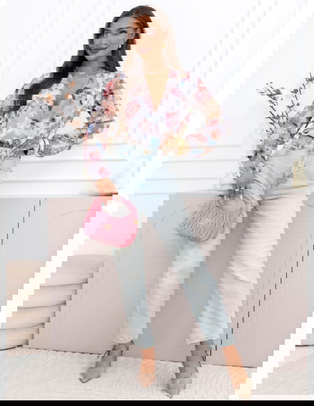 Szare body w kwiaty z przekładanym dekoltem Nafeeza