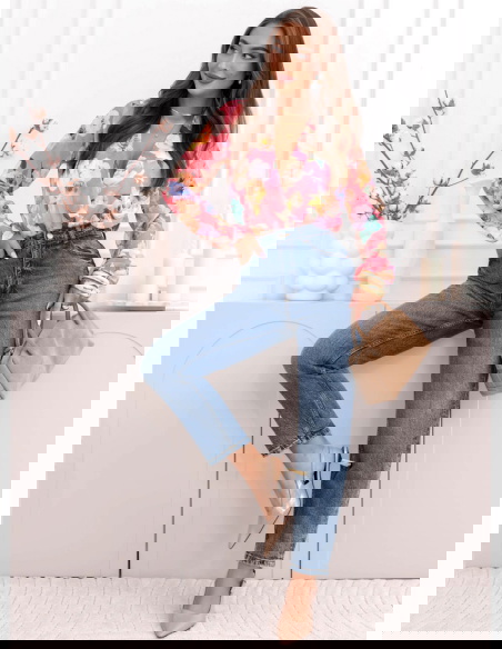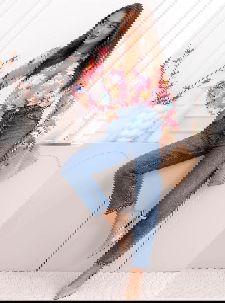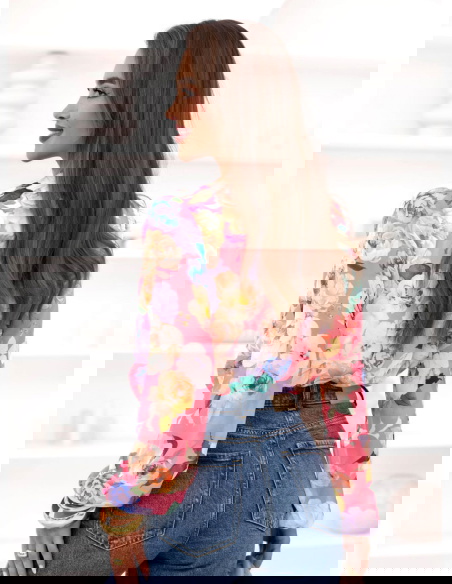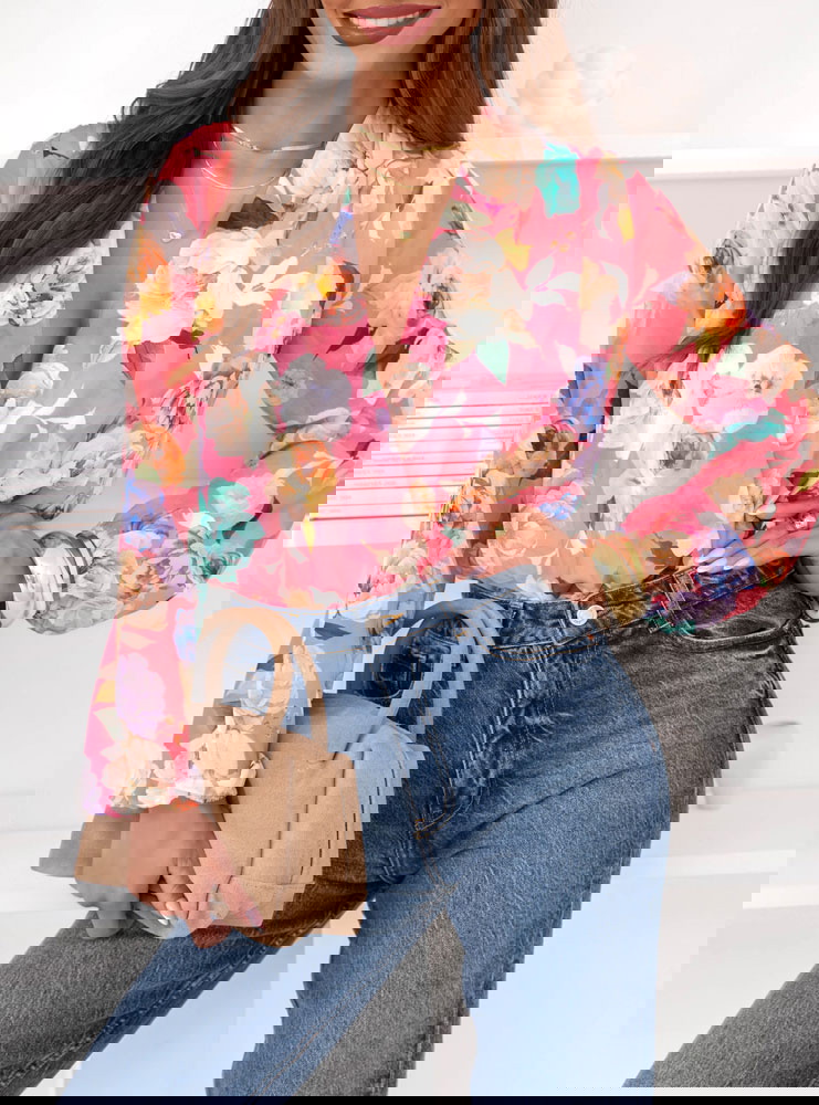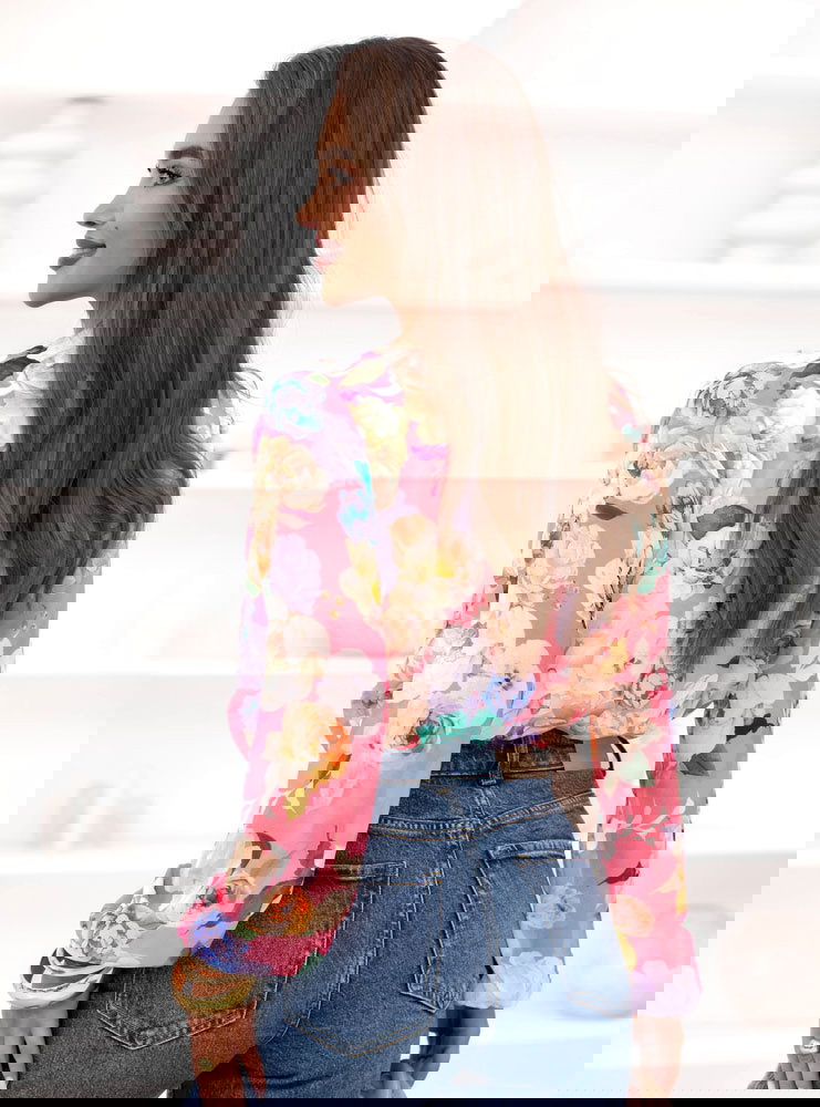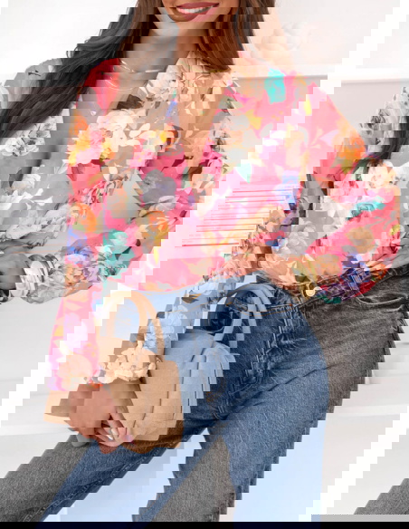 Różowe body w kwiaty z przekładanym dekoltem Nafeeza