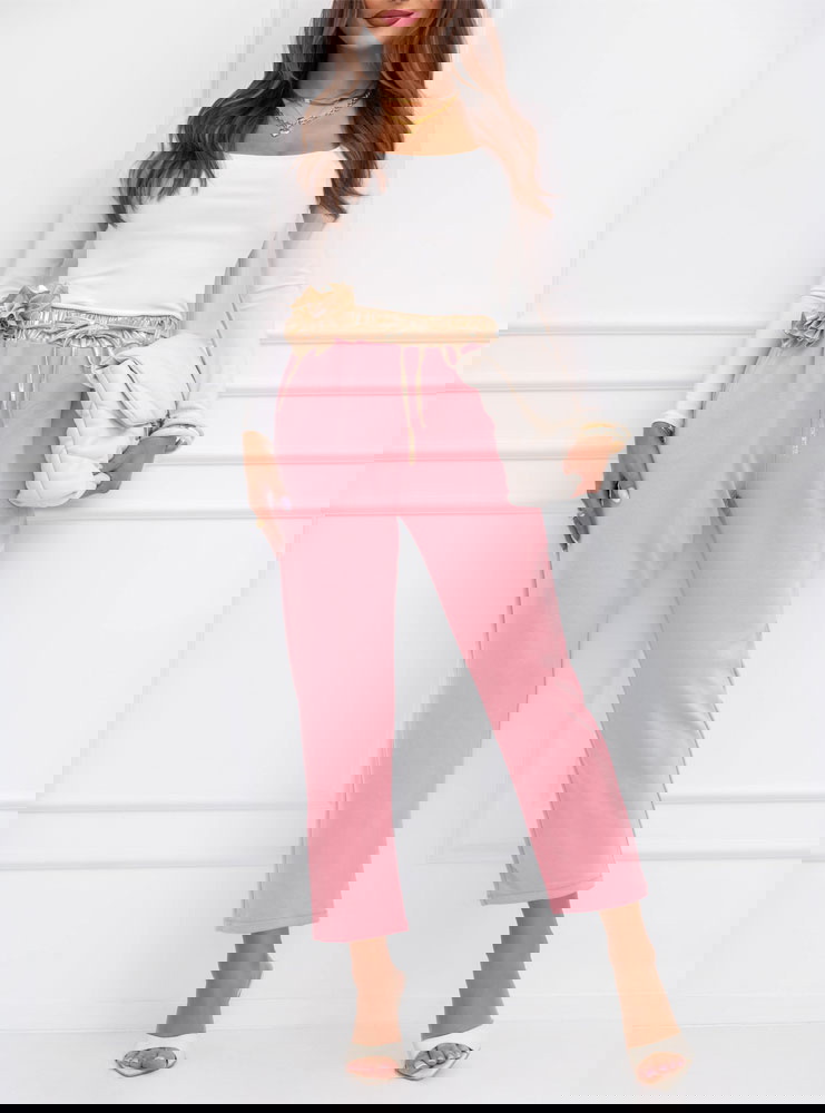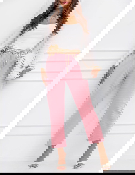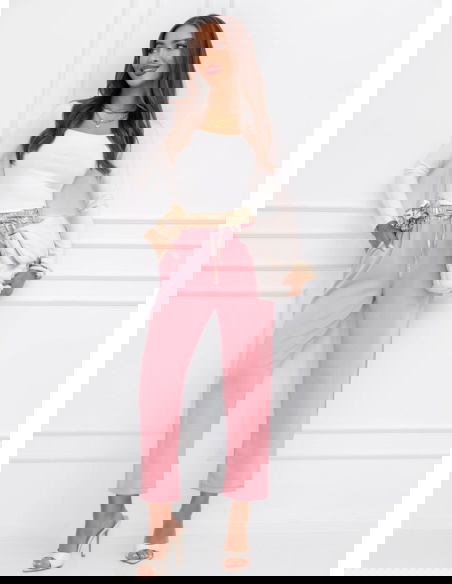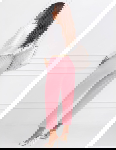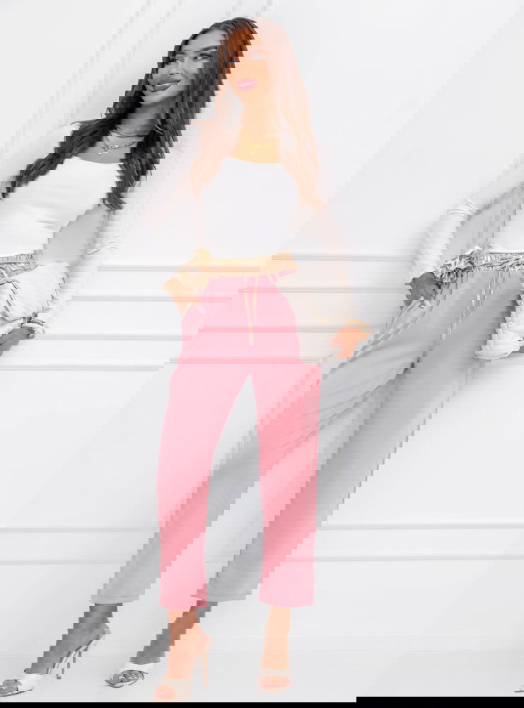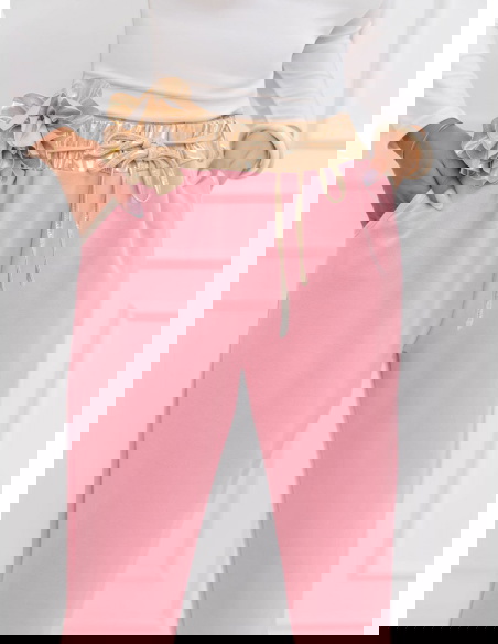Pudrowe spodnie z ozdobnym paskiem Delyssa
