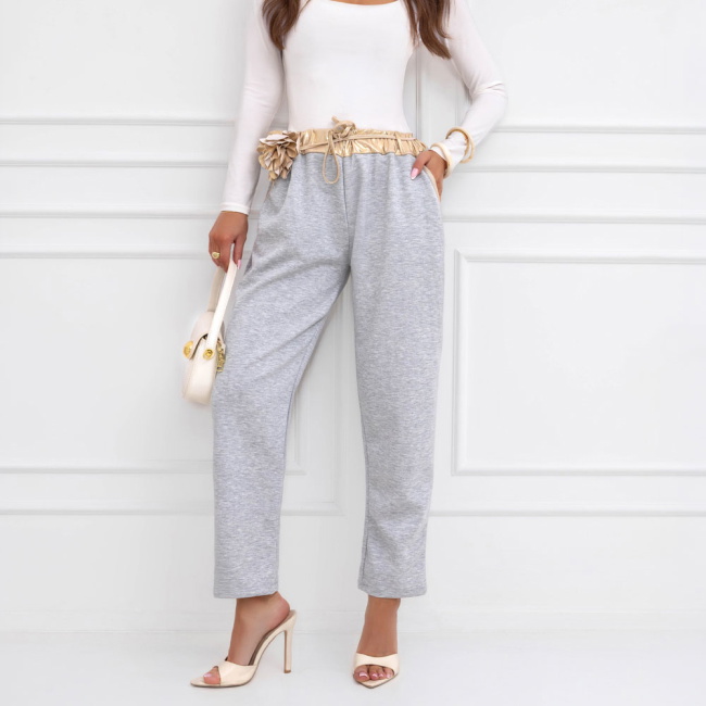 Szare spodnie z ozdobnym paskiem Delyssa