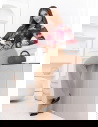 Rozszerzane nogawki nadają stylizacji lekkości i subtelnej elegancji. To fason, który wysmukla linię bioder i ud, a jednocześnie dodaje całości nowoczesnego charakteru. Beżowy odcień jest uniwersalny i twarzowy. Świetnie komponuje się z bielą, czernią, czekoladą czy pastelami. To kolor, który wygląda klasycznie i pasuje do wielu okazji.