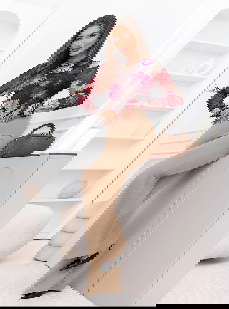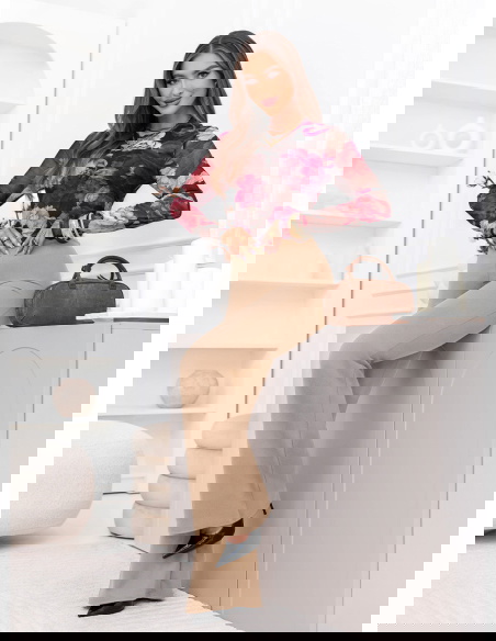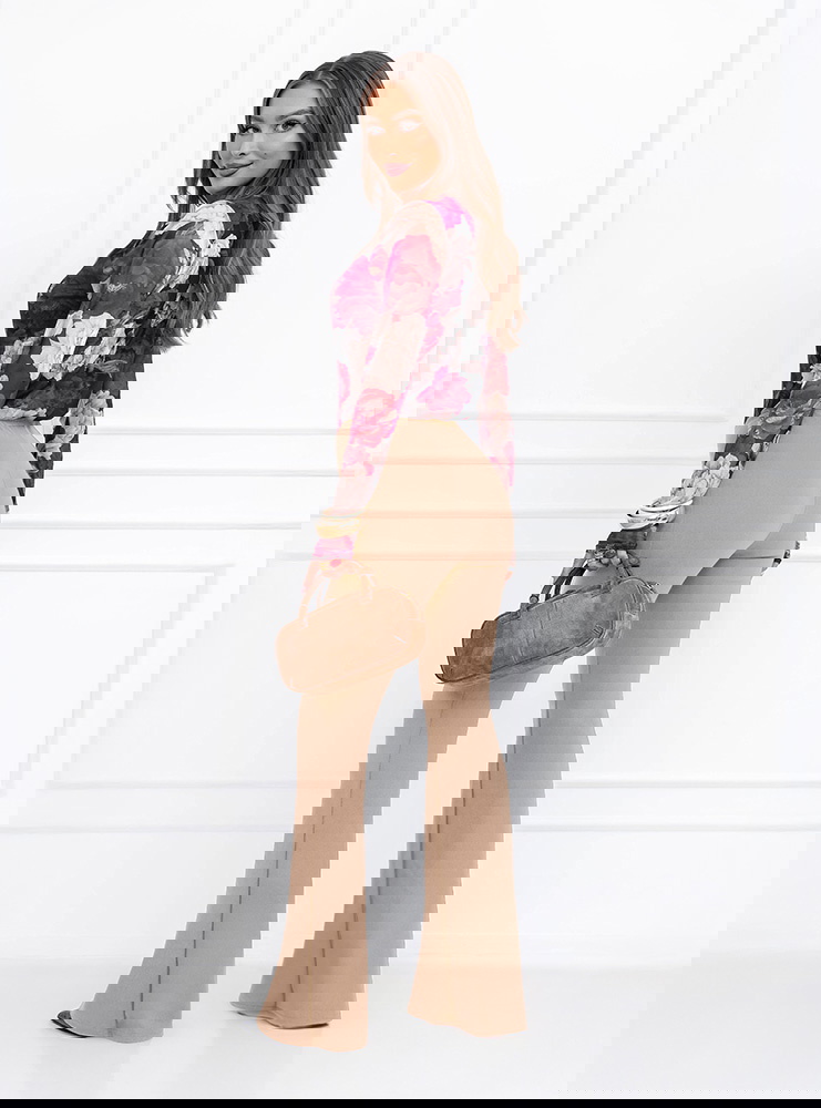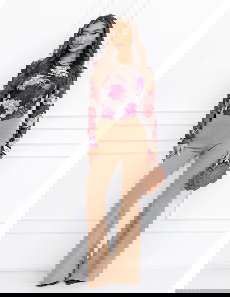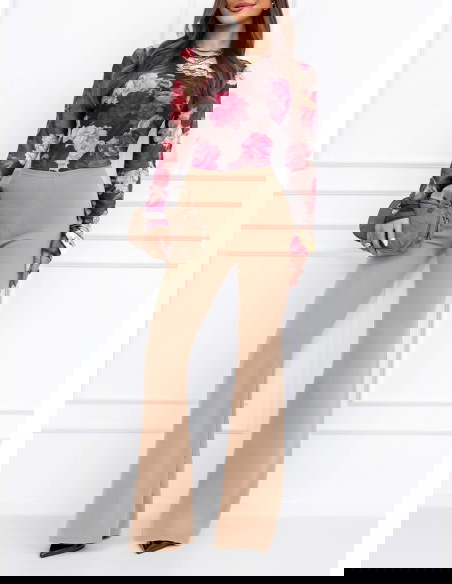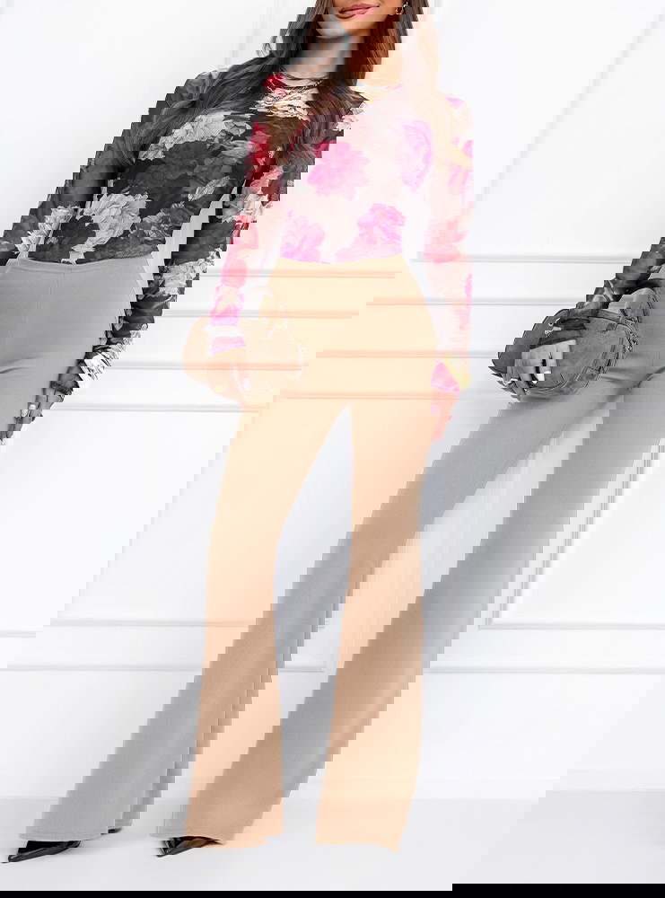 Rozszerzane nogawki nadają stylizacji lekkości i subtelnej elegancji. To fason, który wysmukla linię bioder i ud, a jednocześnie dodaje całości nowoczesnego charakteru. Beżowy odcień jest uniwersalny i twarzowy. Świetnie komponuje się z bielą, czernią, czekoladą czy pastelami. To kolor, który wygląda klasycznie i pasuje do wielu okazji.