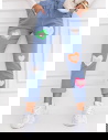 Niebieskie spodnie z ozdobnymi naszywkami Mavreena