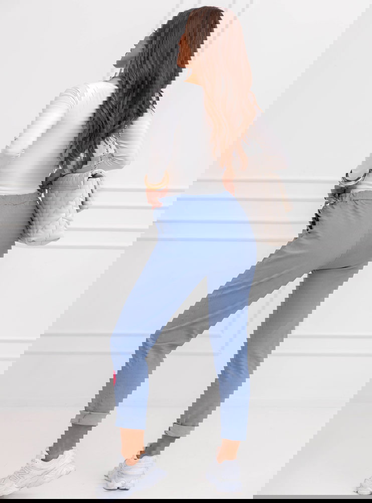 Niebieskie spodnie z ozdobnymi naszywkami Mavreena to wygodny model z wyrazistym, kolorowym akcentem. Stonowany odcień niebieskiego stanowi spokojną bazę dla kontrastowych aplikacji w kształcie serc. Naszywki przyciągają wzrok i nadają stylizacji lekkości. Elastyczna talia ze sznurkiem pozwala dopasować spodnie do sylwetki i zapewnia komfort przez cały dzień. Swobodny fason dobrze układa się na ciele i nie ogranicza ruchów. Podwijane nogawki podkreślają casualowy charakter modelu. To propozycja dla kobiet, które lubią łączyć wygodę z modowym detalem.