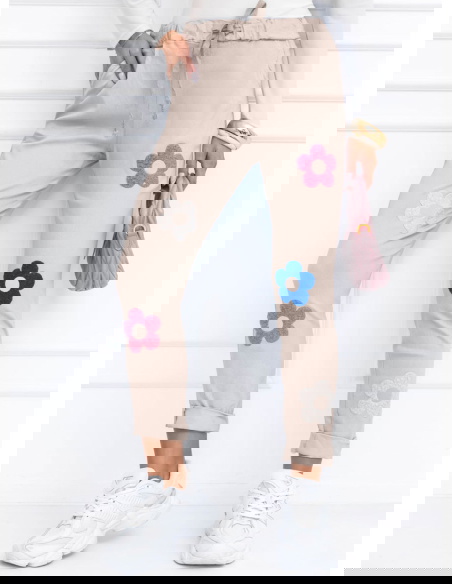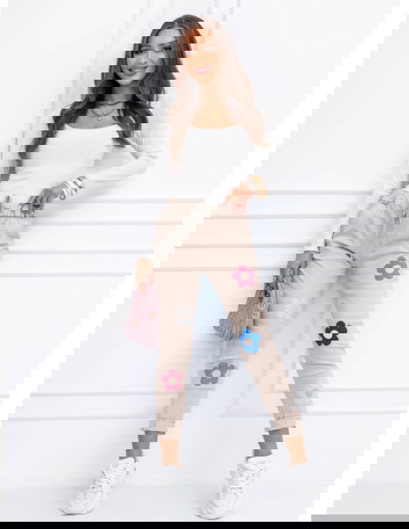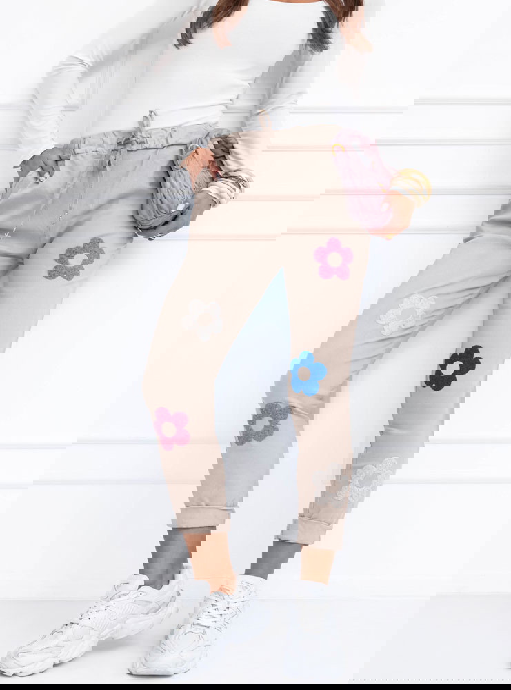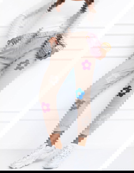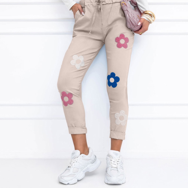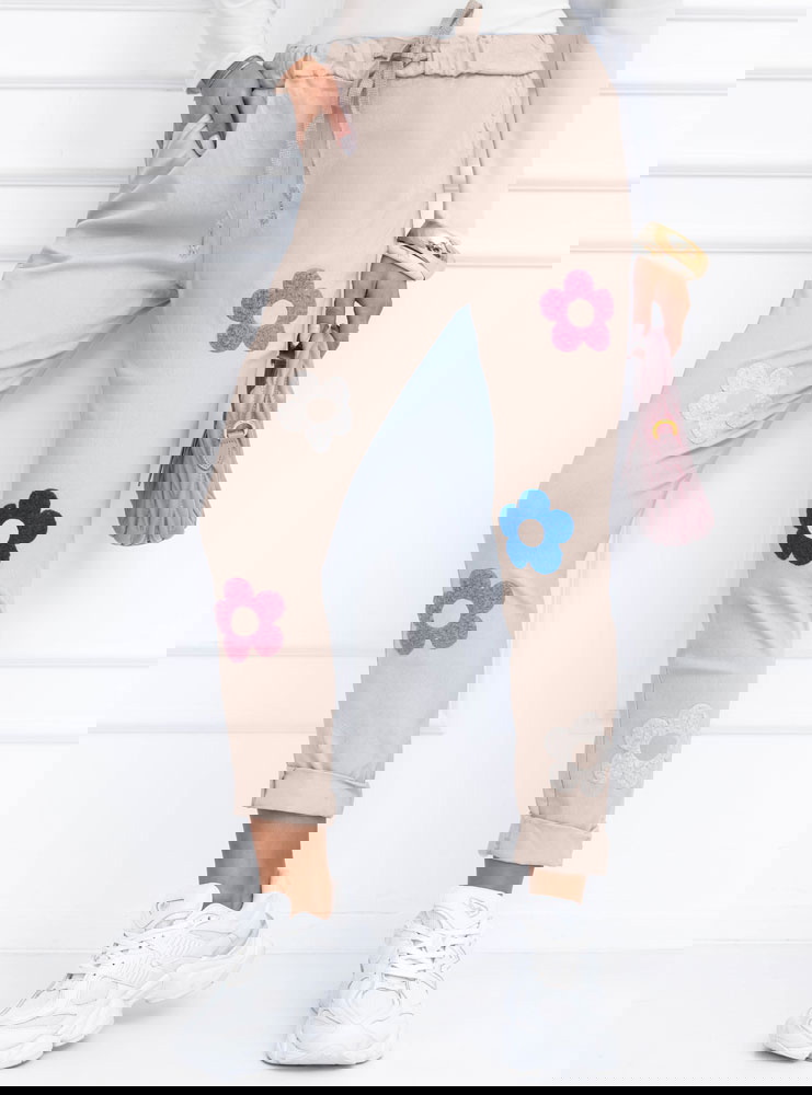 Beżowe spodnie z ozdobnymi kwiatkami Nedivaa